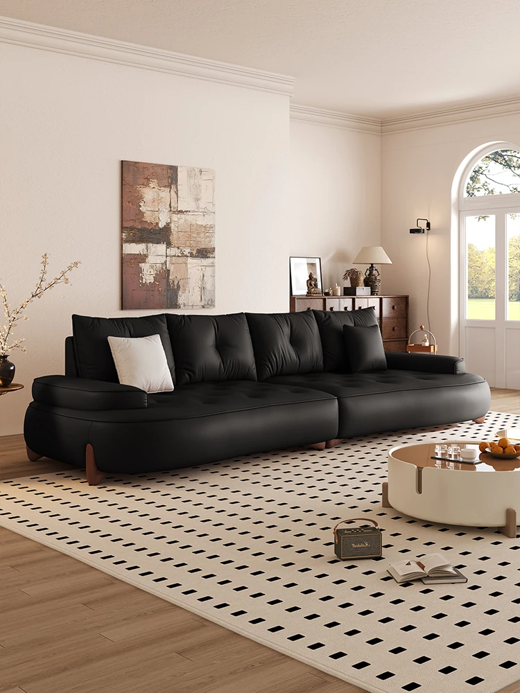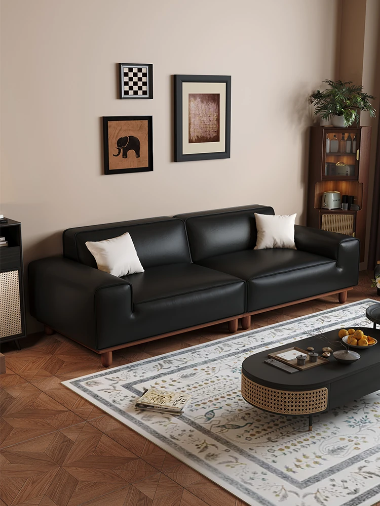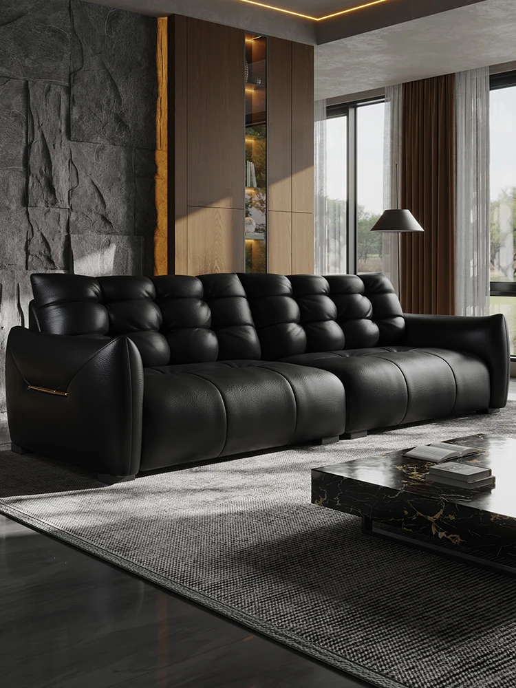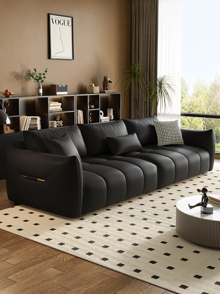 イタリアンラグジュアリー ブラックシュガー 本革ソファ モダンミニマリスト 小型リビング向け 3人掛け 4人掛け ヴィンテージレザー ソファ - スタイリッシュで快適な空間を演出!