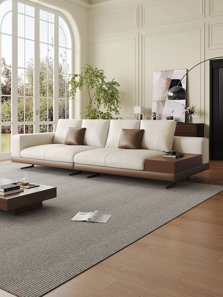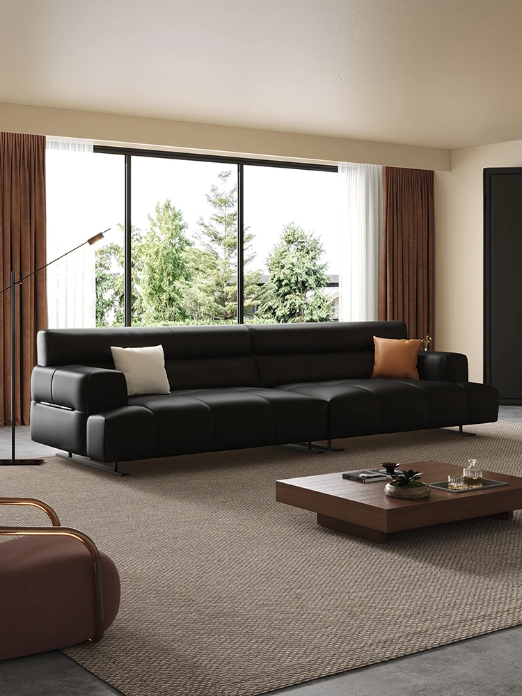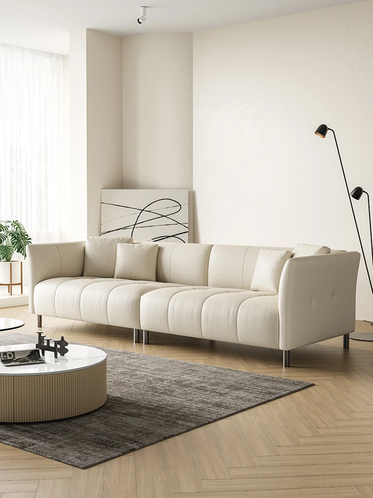 イタリアンミニマリストの軽量ラグジュアリーデザイン、ビンテージスタイル、小型リビング向けピアノキータッチ、本革製直列型モダンシンプルソファ - 洗練された大人の空間に秘められた贅沢さを添えて。
