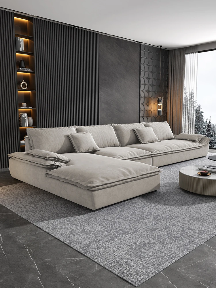 2025年新作・極上の雲のような柔らかさ!モダンでミニマルデザインのフランネルソファ ~広々リビングにもぴったり、3~4人掛け対応~
