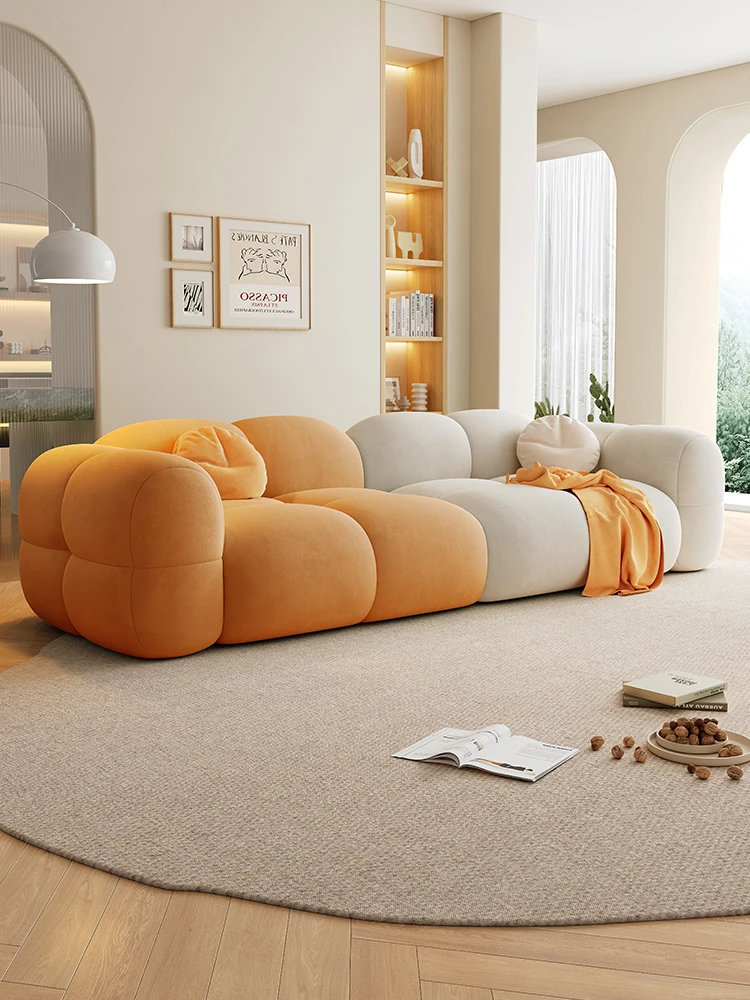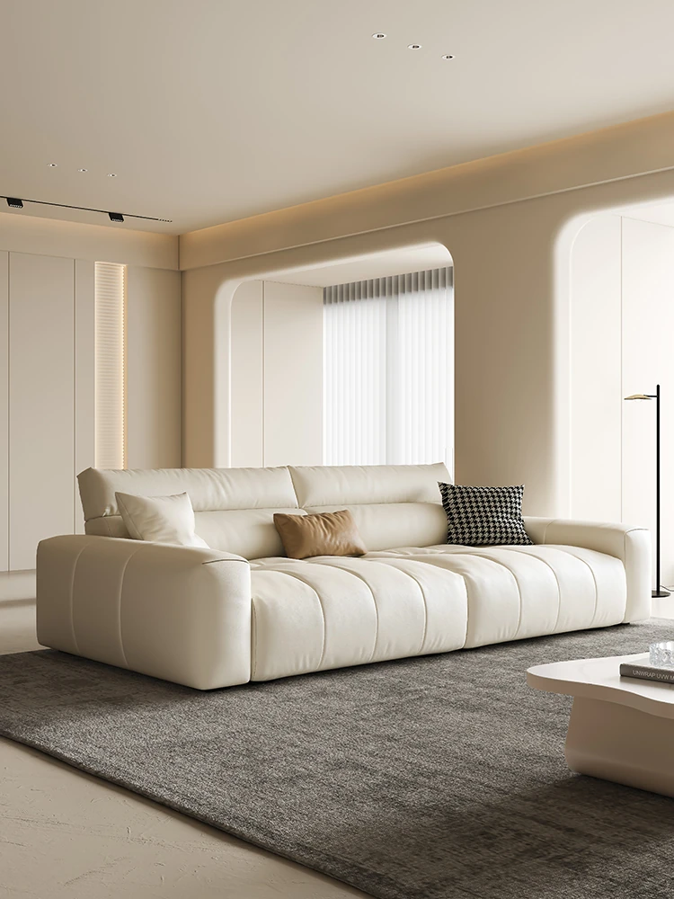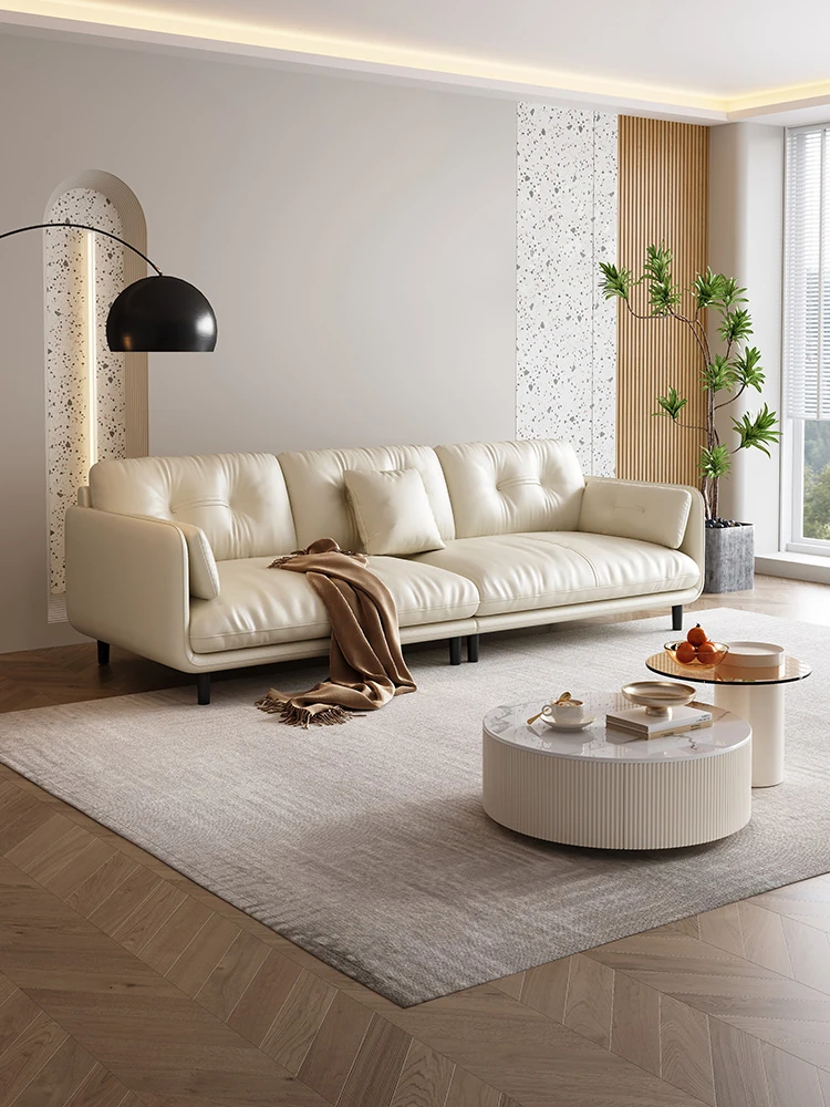 イタリアンミニマルクリーム風キャットクロー皮革モジュールソファ - リビングにぴったりのシンプルでモダンなラグジュアリー、ピアノキーソファでスタイルを引き立てる。