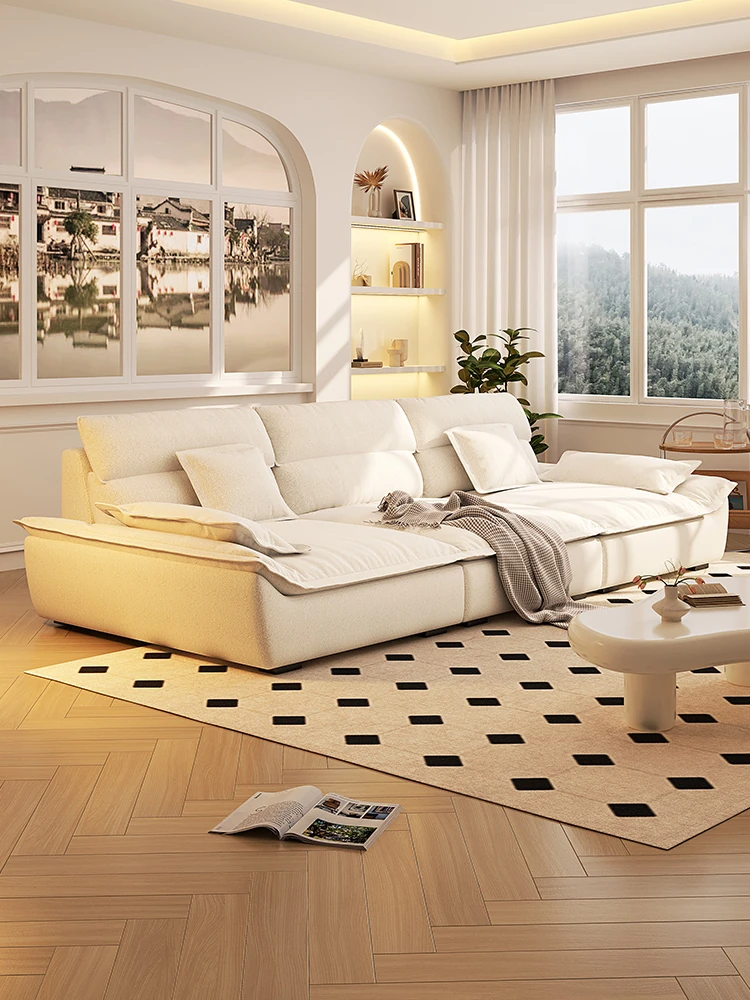 2025年新登場!イタリアン・ミニマルデザインのファミリー向け広々スパンジバージョン・カウチソファ。居心地の良さを追求した超ワイドシートで、リビングを格上げするモダン家具。