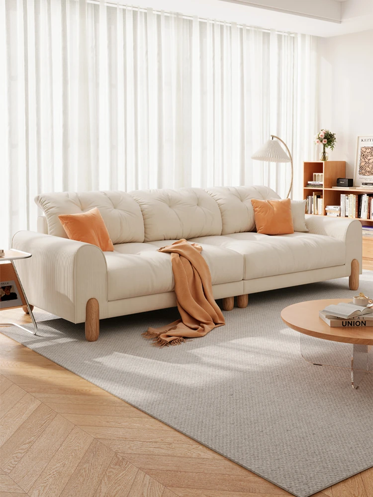 Modern Minimalist Nordic Wooden Cream Sofa - Perfect for Small Living Rooms, Cozy 3-Seater Fabric Couch Ensemble