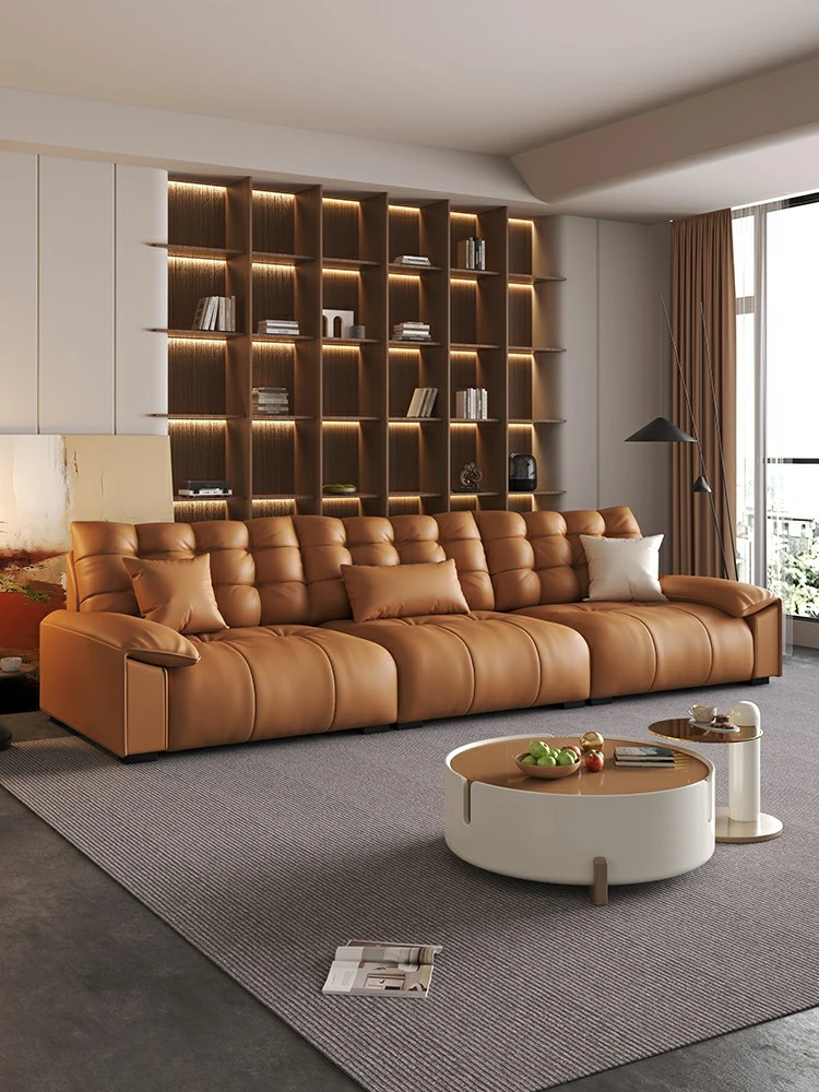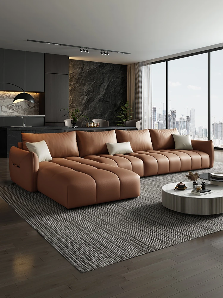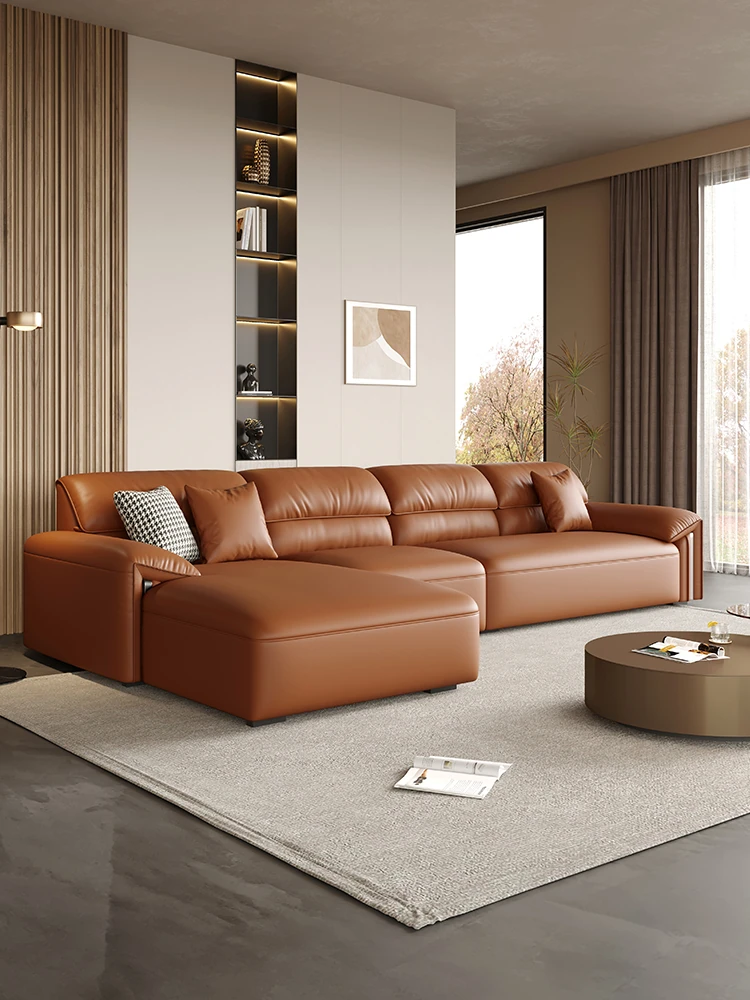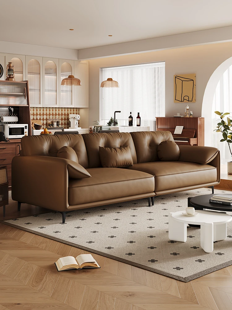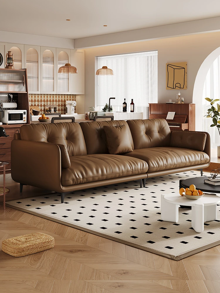 Italian Minimalist Genuine Leather Sofa Set - Modern Retro Style for Living Room, Suitable for Any Size Home, Luxurious Chaise Design