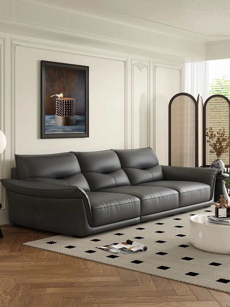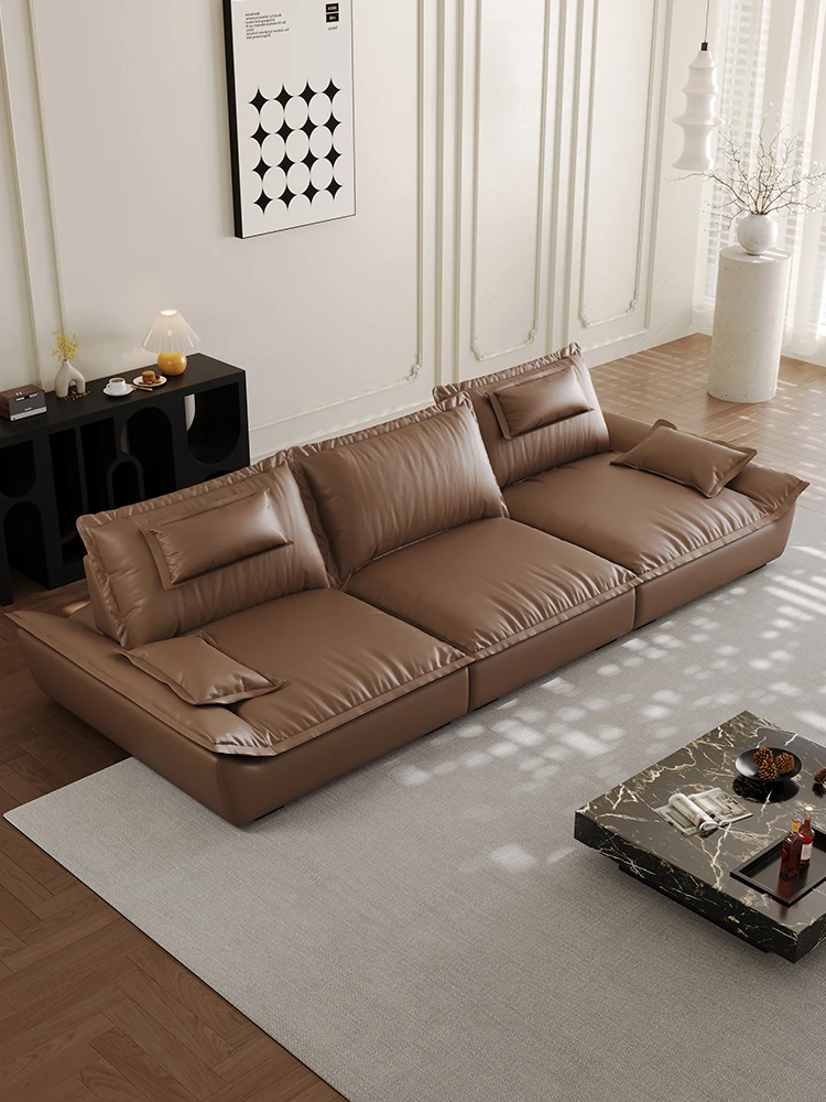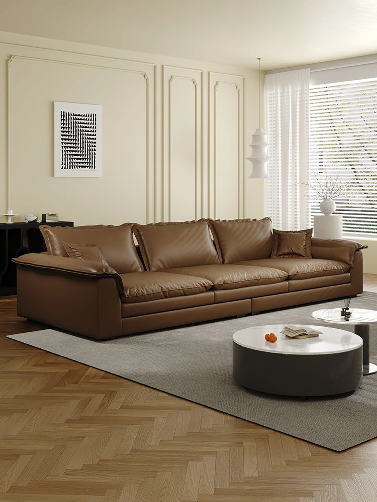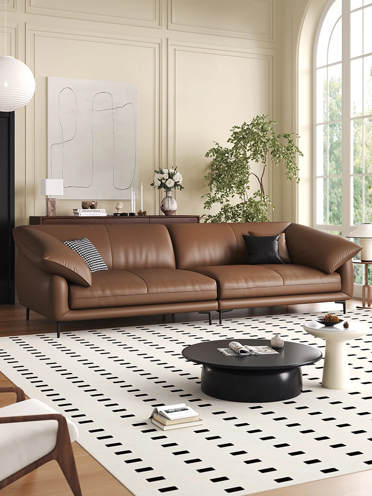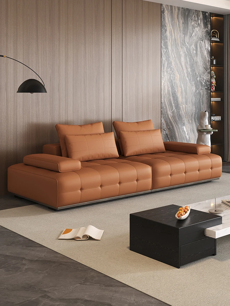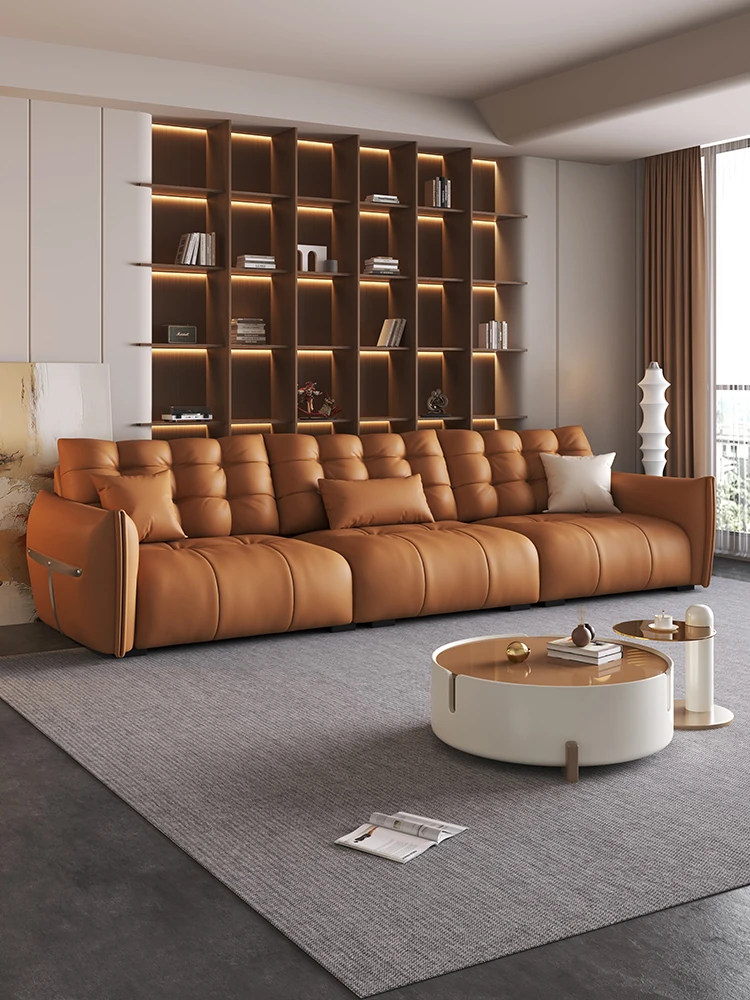 Italian Minimalist Genuine Leather Sofa Set - Modern Retro Style for Living Room, Suitable for Any Size Home, Luxurious Chaise Design
