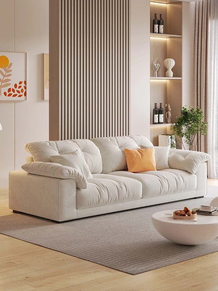 Cloud Puff Marshmallow Fabric Sofa - Cat Scratch Resistant, French Cream Style for Modern Small Living Rooms
