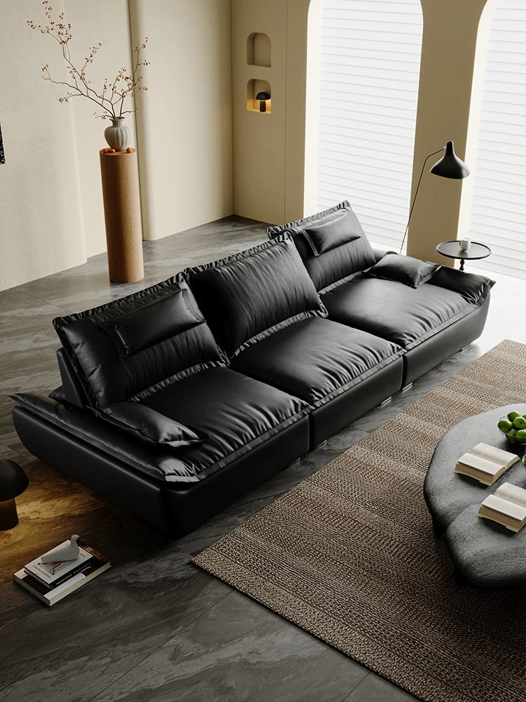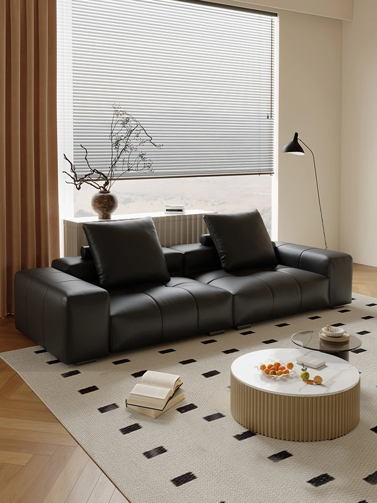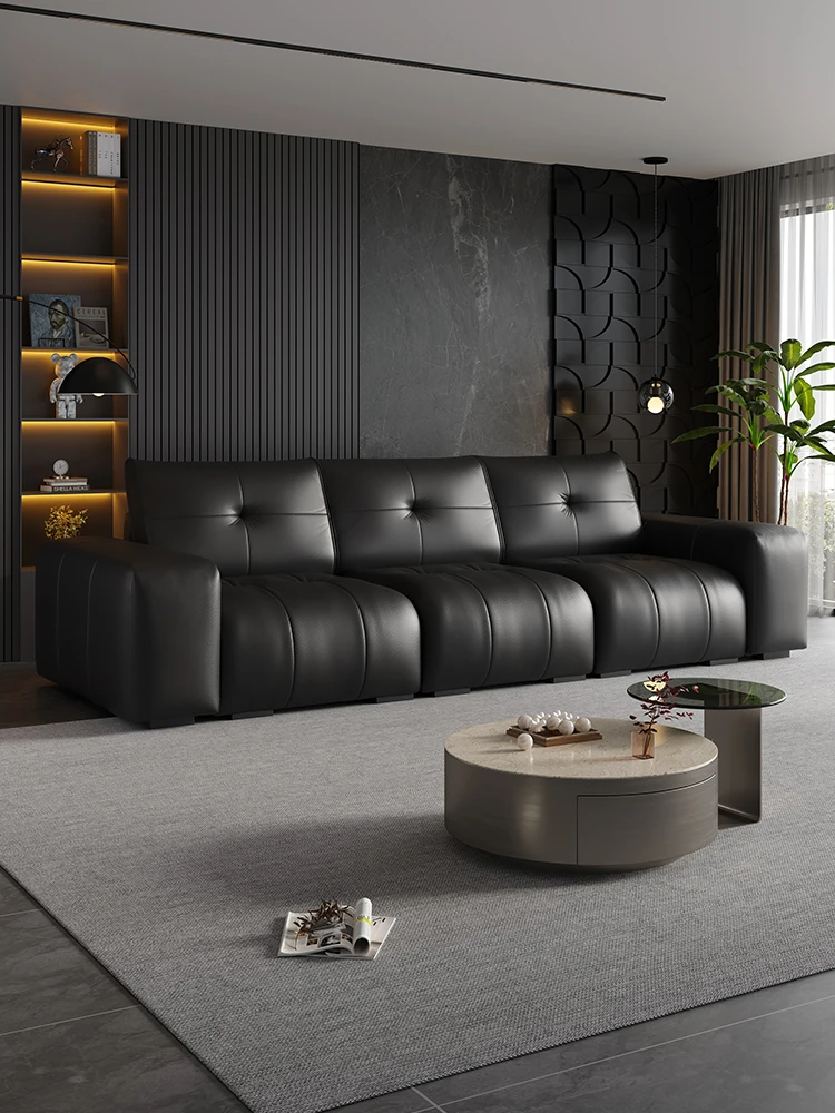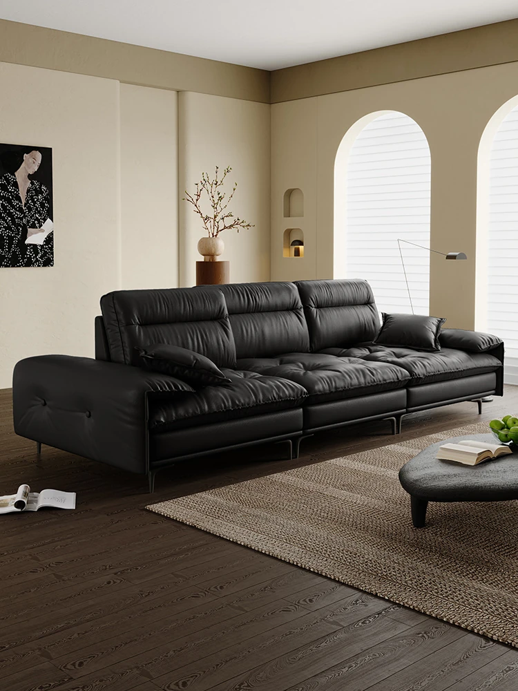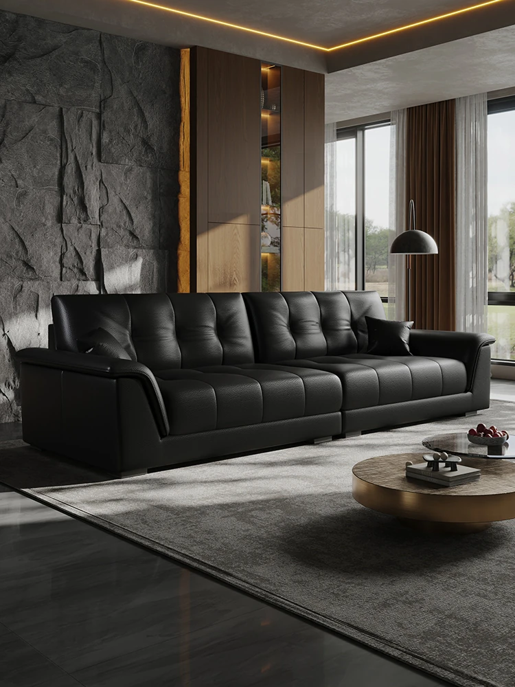2025 New Italian Minimalist Luxury Black Genuine Leather Sofa for Small Living Rooms - Modern and Sleek Design