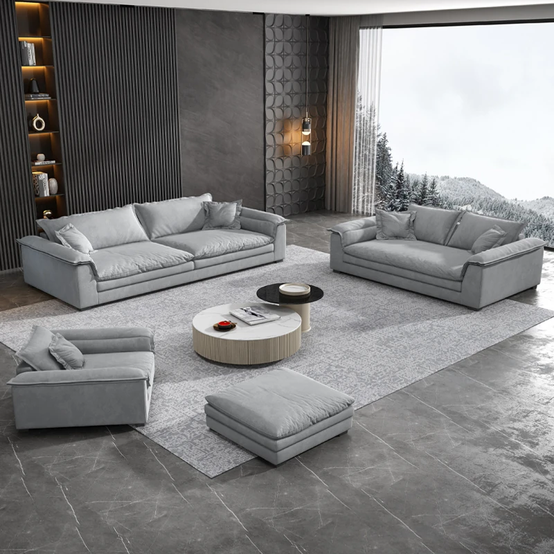 Modern Italian Luxury Sofa Set - Easy-Clean Tech Fabric Build, Perfect for Medium to Large Living Rooms, Comfortable 3-4 Seater with Latex Cushioning