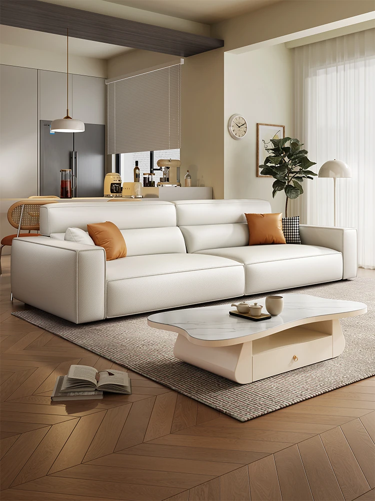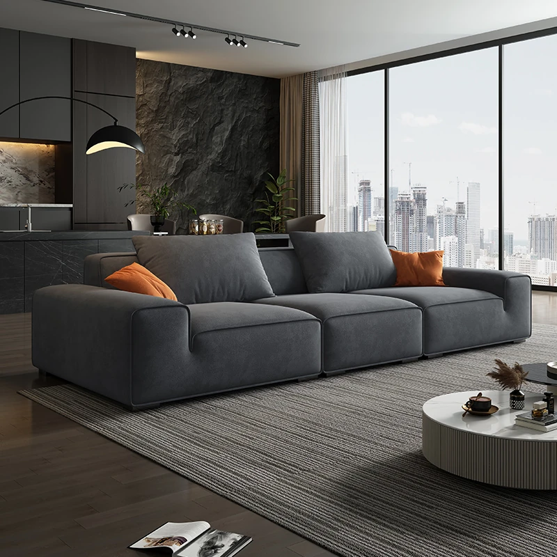Italian Minimalist Small Apartment Sofa – High Backrest Tofu Block Design, Tech Leather & Fabric Blend for a Modern Luxe Living Room Experience