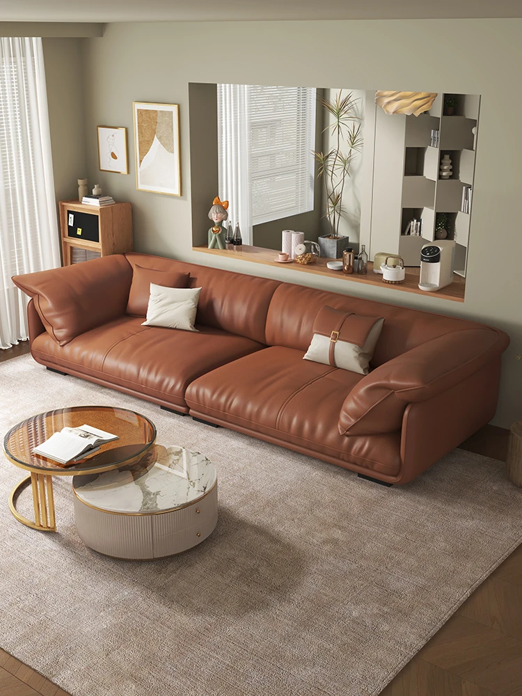 2025 New Italian Chic Dior Genuine Leather Sofa - Modern Minimalist Black Straight Sofa for Large and Small Living Rooms