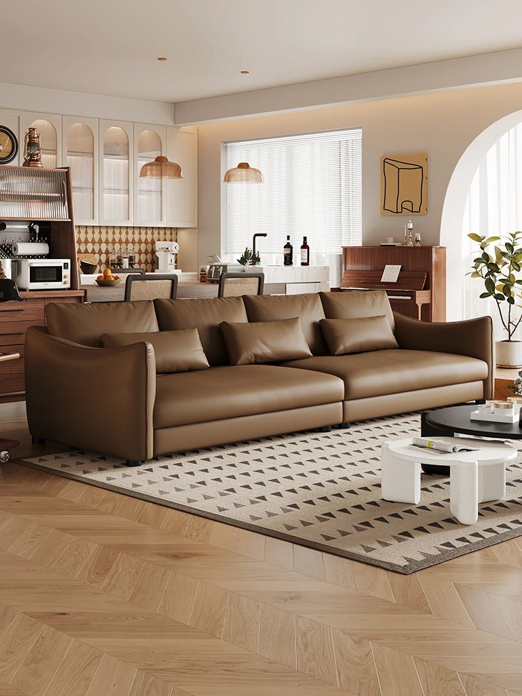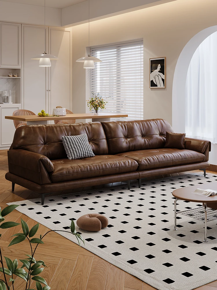 Vintage Oil Wax Eco Leather Sofa - Modern Minimalist Design for Small Living Rooms, Available in Three or Four Seats with Plush Down Cushioning