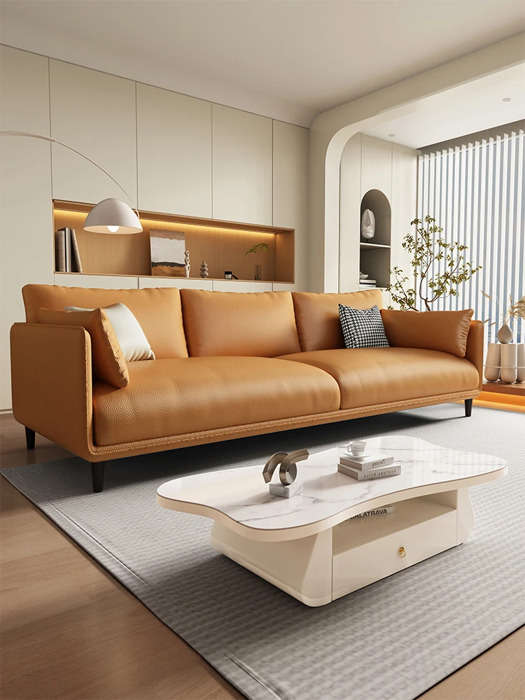 Modern Italian Minimalist Faux Leather Sofa - Elegant and Stylish for Small Living Rooms, Trendy Design for Contemporary Homes