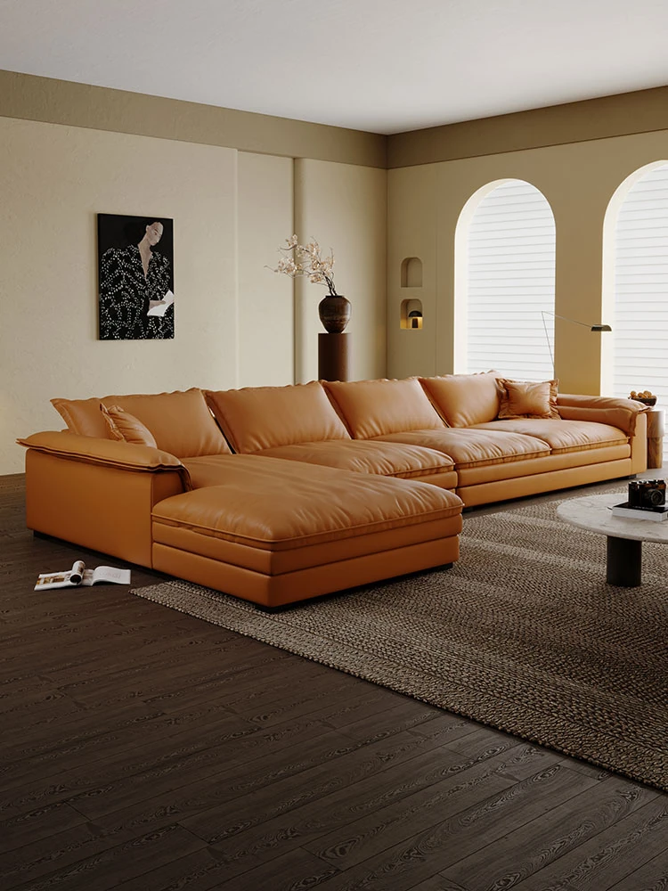 Italian Luxurious Vintage Extra-Wide Genuine Leather Chaise Lounge Sofa - Perfect for Modern Large Living Rooms