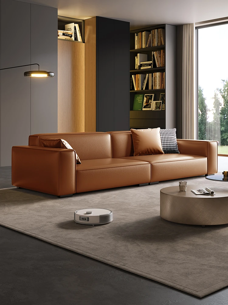 2025 New Italian Minimalist Black Genuine Leather Sofa - Modern Stylish Design, Perfect for Trending Home Decor, Spacious 3-4 Seater Sectional for Contemporary Living Spaces