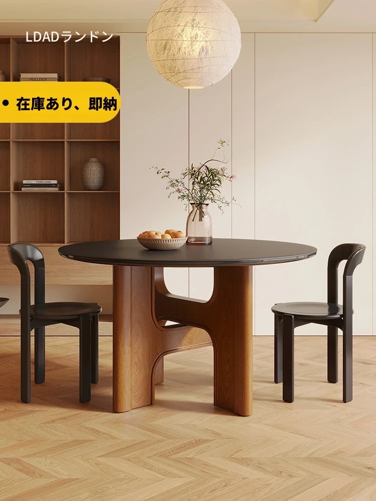 モダンでシンプルなデザイン!伸縮式天然木材と岩板の二合一変形円形テーブル- 小スペースに最適な折りたたみ式ダイニングセット