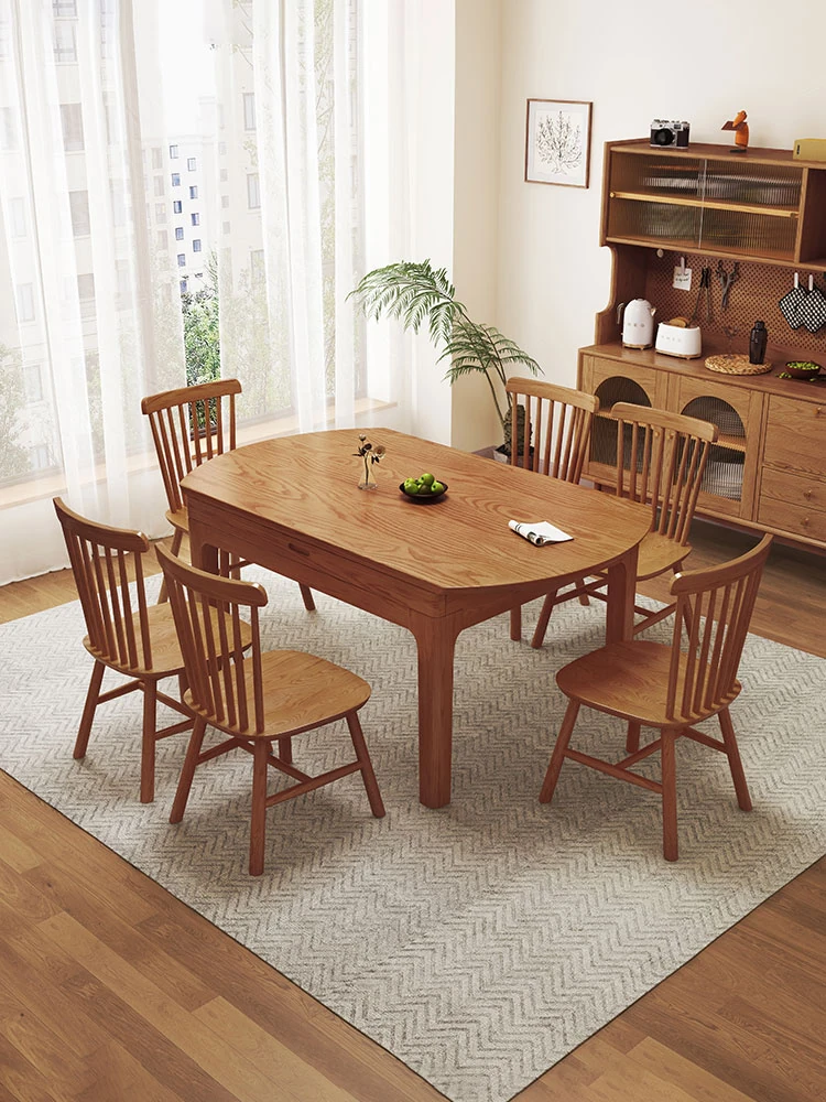 北欧風天然木材 デザイン 伸縮式ダイニングテーブル 小型住宅向け 多機能 丸角兼用 和モダン ダイニングセット - おしゃれな北欧スタイルでお部屋を素敵に!