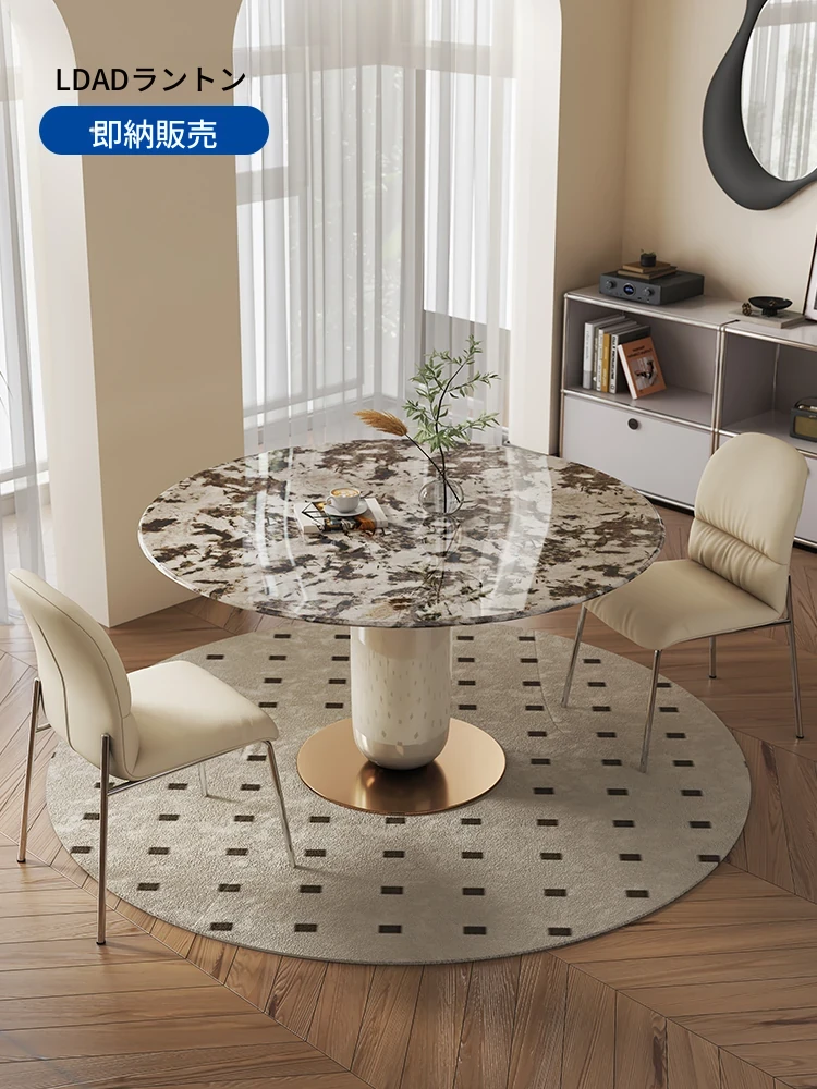 2025年新作!イタリアンミニマリズムの軽やかなラグジュアリー、天然石のラウンドダイニングテーブル&チェア。家庭用やホテルにも最適!回転プレート付きの大きな円卓で、スタイリッシュな食卓を演出します。