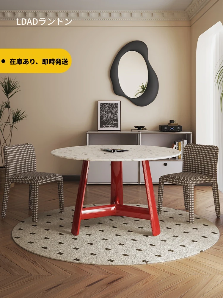 【LDAD】 北欧侘寂スタイル テラゾー 天然石ラウンドテーブル - 小スペースに最適!モダンでシンプルなデザイン、洗練された北欧の雰囲気を食卓に。
