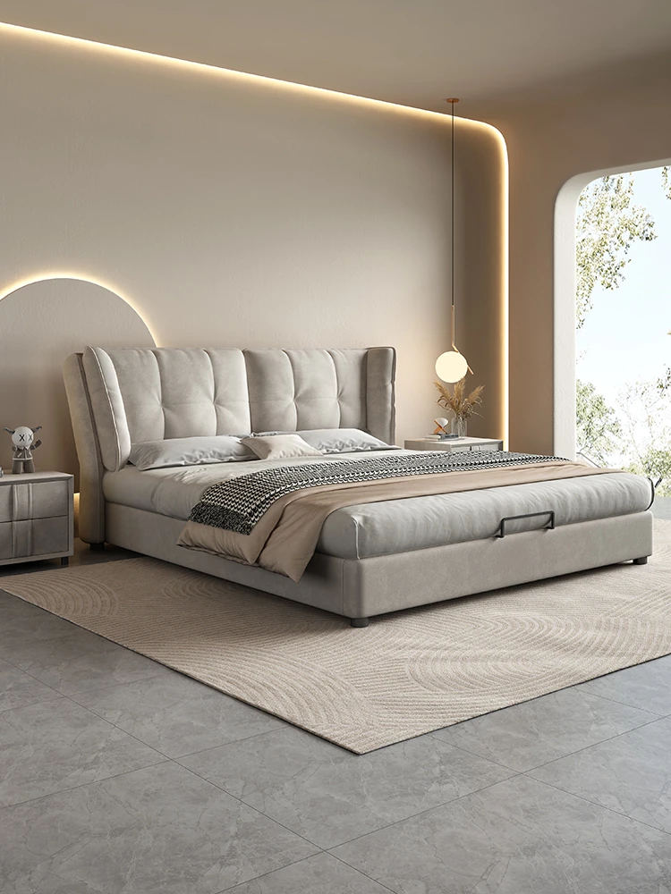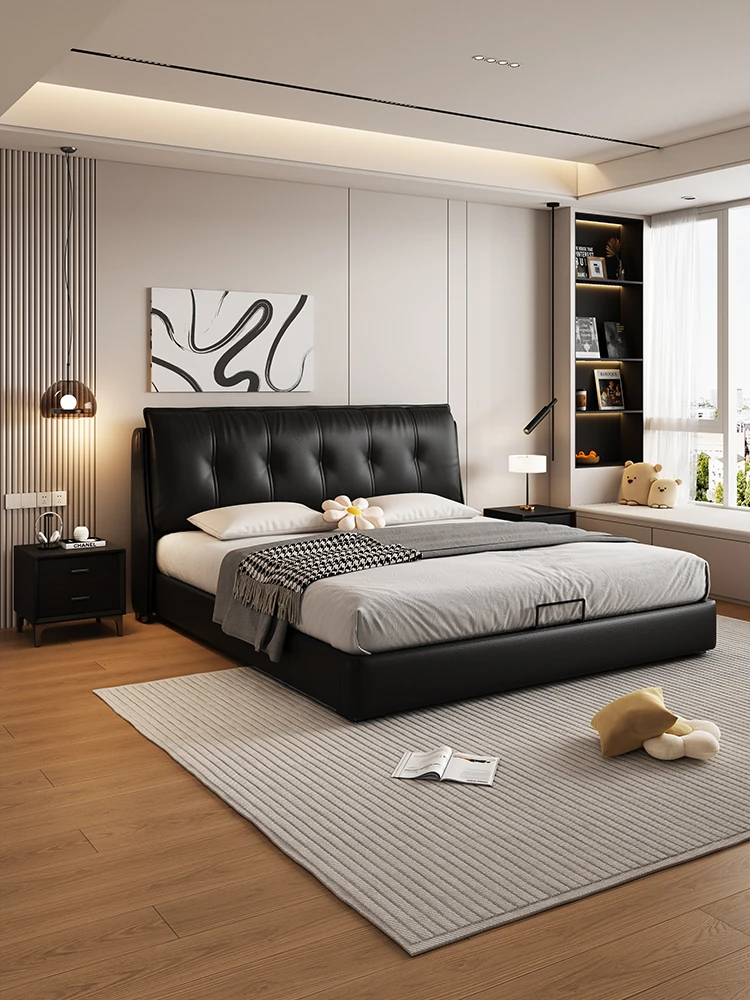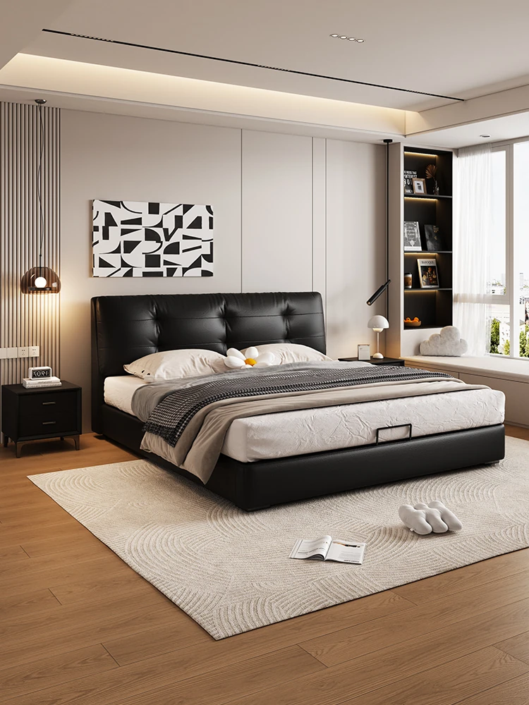 2025年最新モデル!高級感溢れるモダンでシンプルな1.8mエアプレッシャー収納付き1.5mキャットスクラッチレザーのダブルベッド