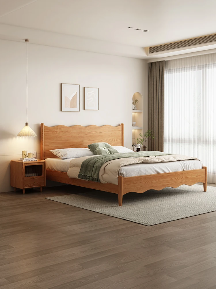 北欧風新品!現代シンプルなデザインの1.5m/1.8mラバーウッド無垢材ダブルベッド、主寝室やゲストルームにぴったりの家具です。