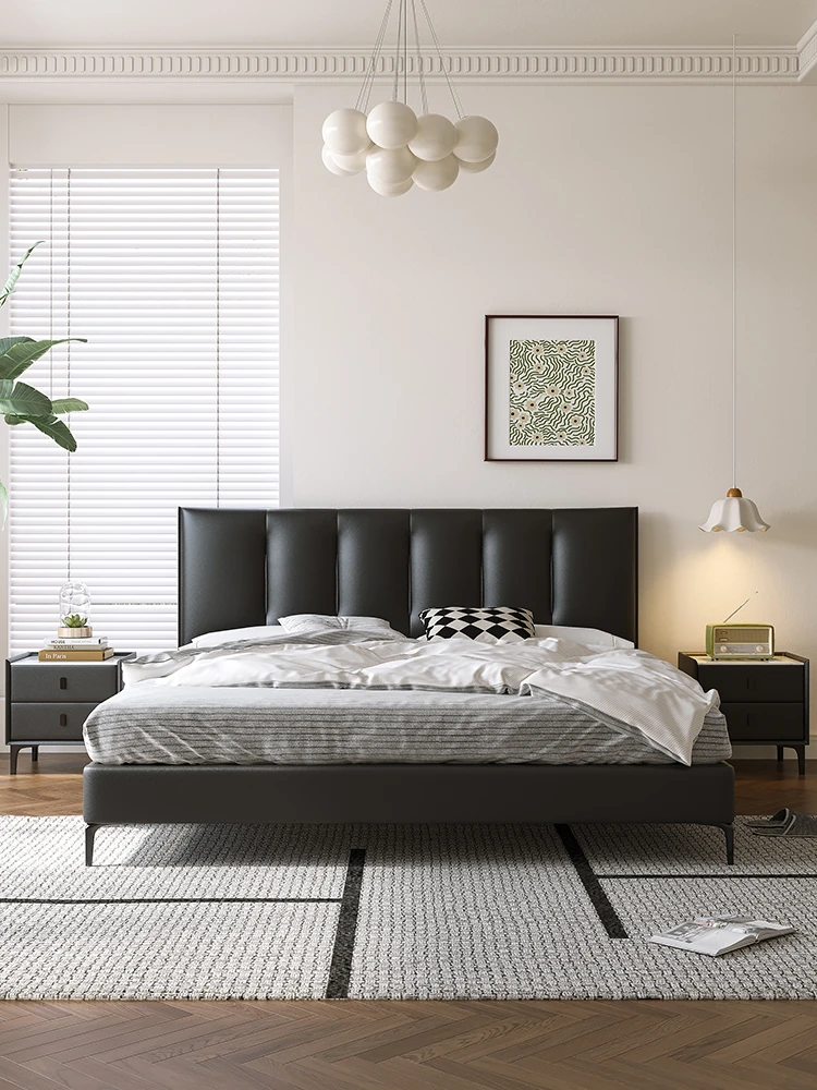 イタリアンミニマリストデザイン★贅沢本革採用!1.8mコンパクトモダン主寝室向けダブルベッド