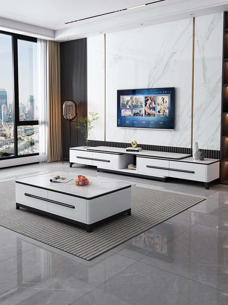 イタリアンモダン・ミニマリストスタイルの小型リビング向け岩板コーヒーテーブル&テレビキャビネットセット ─ おしゃれな北欧デザインで空間を華やかに!