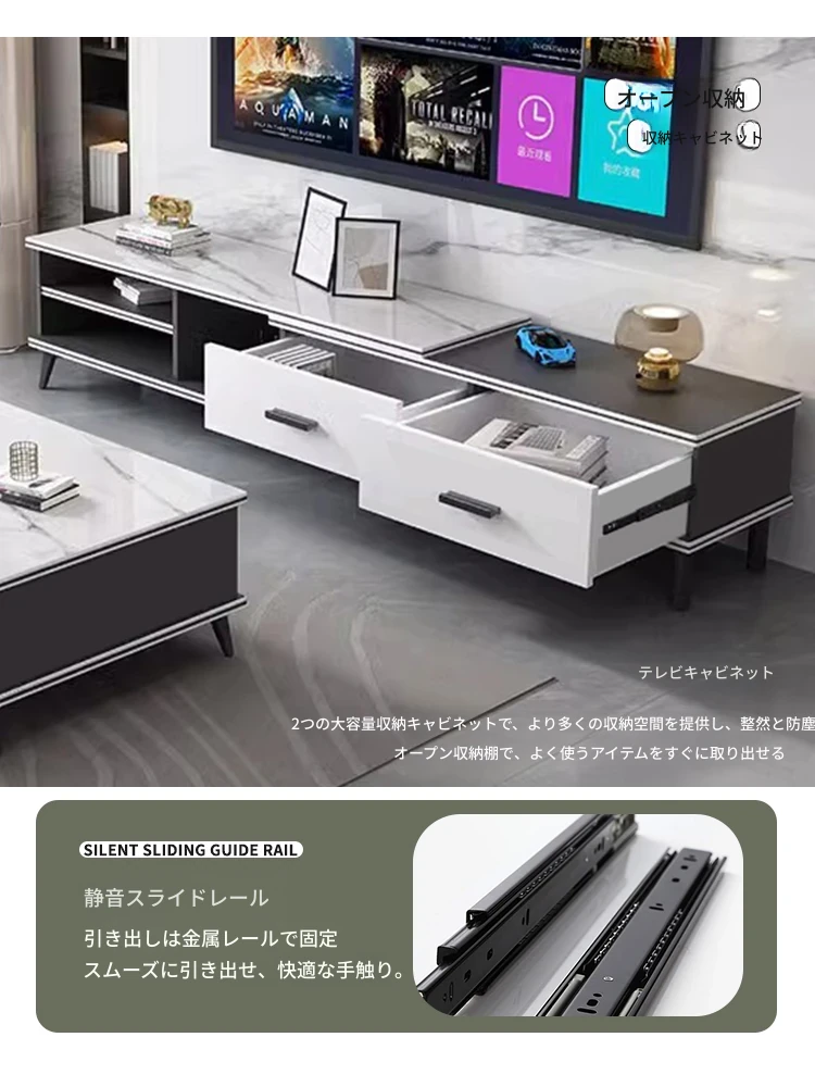 モダンなミニマルデザイン!イタリア風小型伸縮式ストレージ岩板コーヒーテーブル&テレビキャビネットセット - 軽やかなラグジュアリーを手に入れよう!