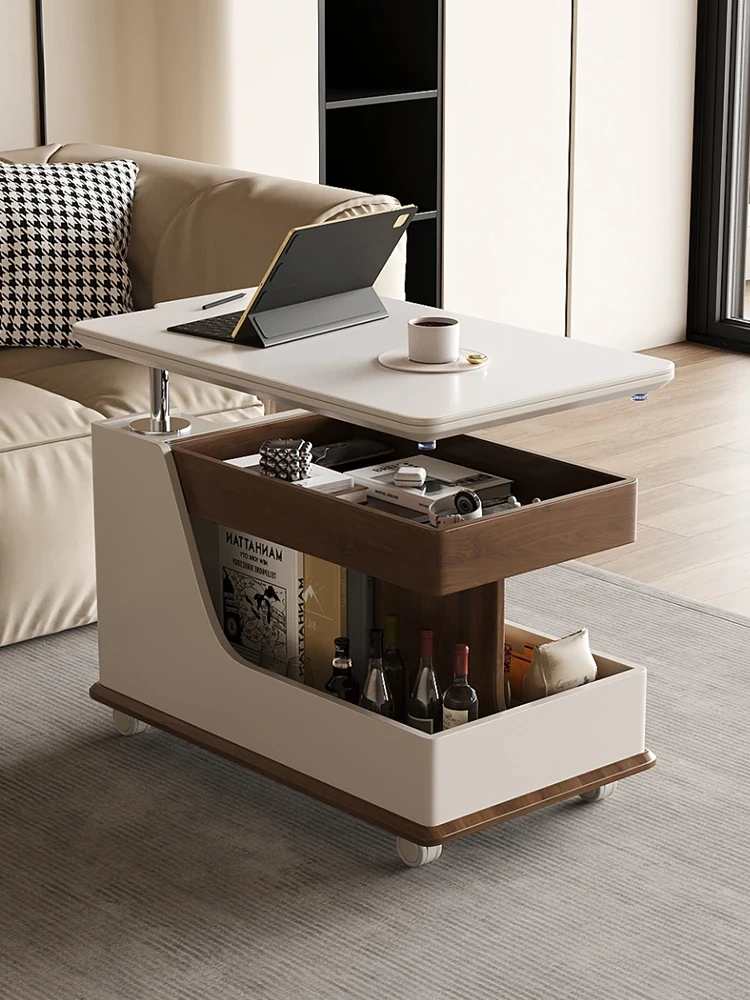 レトロスタイルの移動式ソファサイドテーブル、小型リビングに最適!昇降&折りたたみ式、高級感溢れる家庭用キャスター付きティーテーブル。省スペースで使いやすく、スタイリッシュなインテリアを演出します!