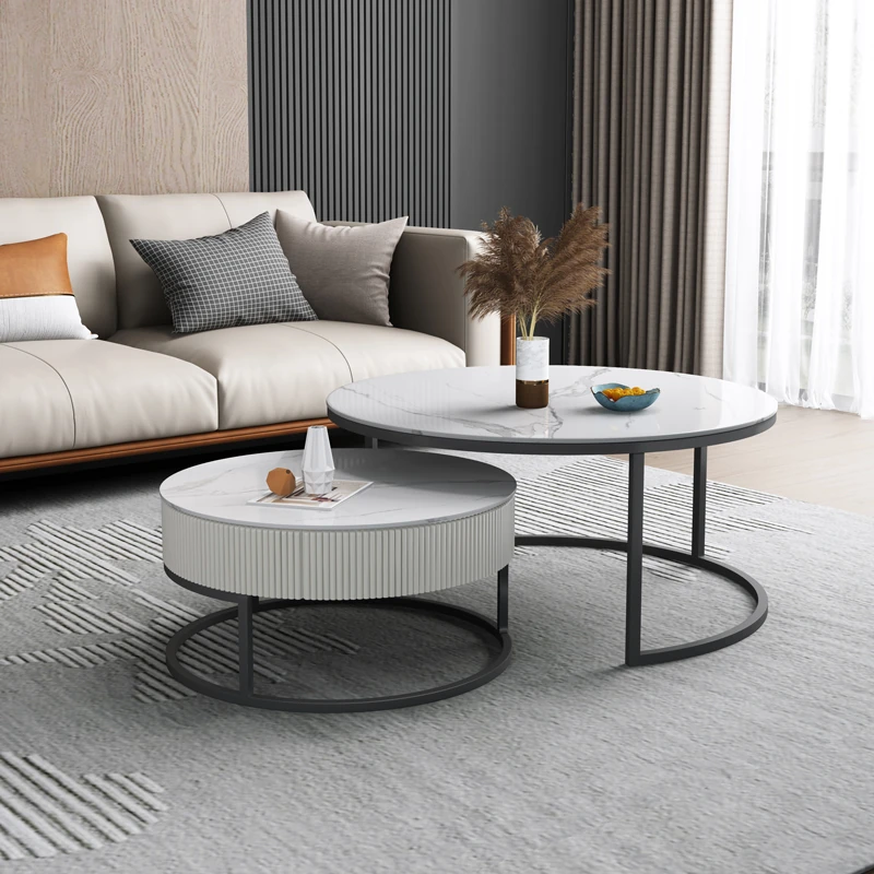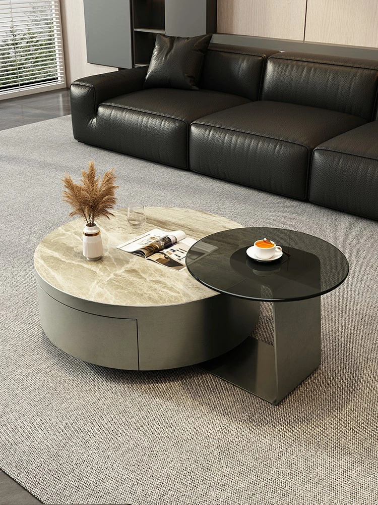 イタリアンミニマリズムの軽奢感漂うリビング用アートロックテーブル - モダンでシンプルな小型住居に最適な流行の丸型コーヒーテーブル。おしゃれな空間を演出し、くつろぎのひとときを提供します!