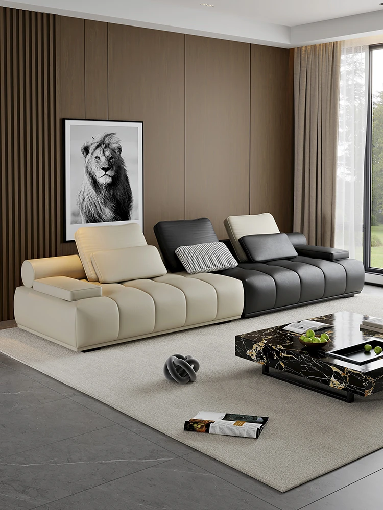 2025 New Italian Minimalist Genuine Leather Sofa - Modern & Simple Living Room Designer Piece with Adjustable Headrest, Ultimate Comfort & Style