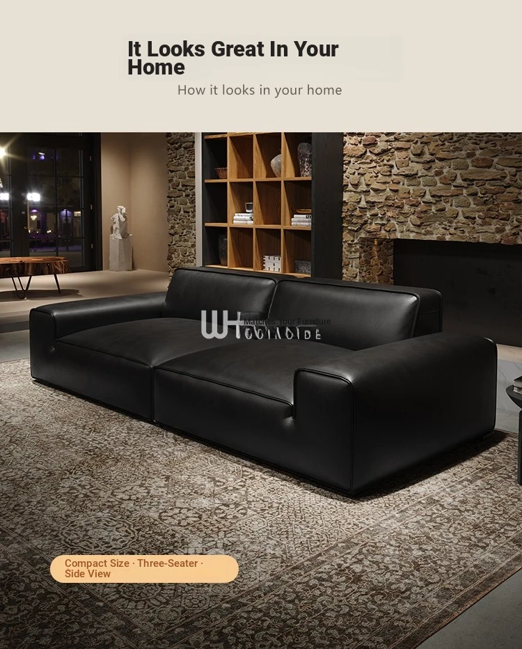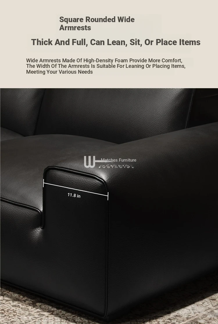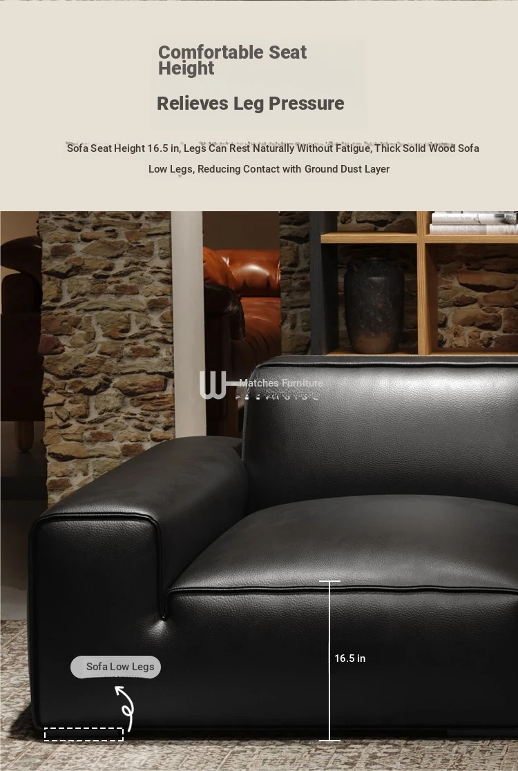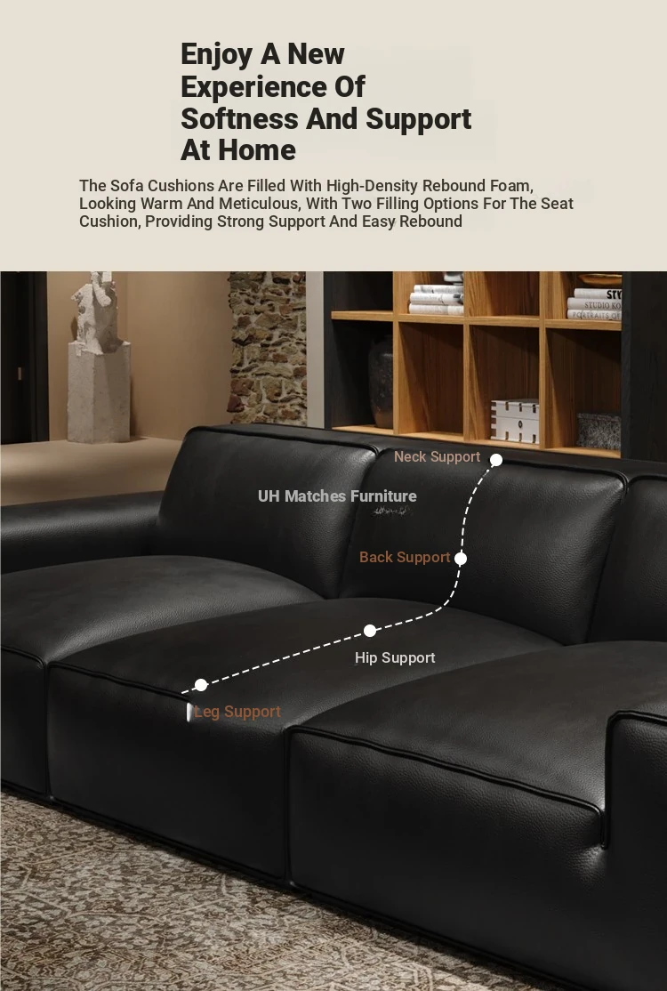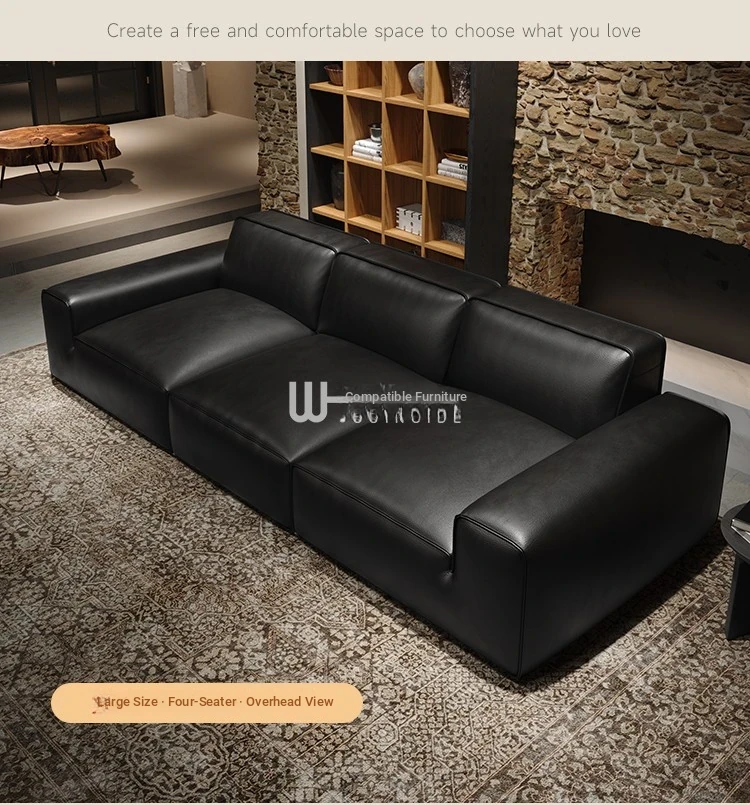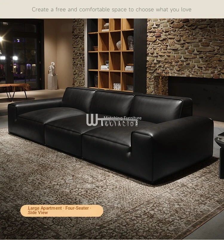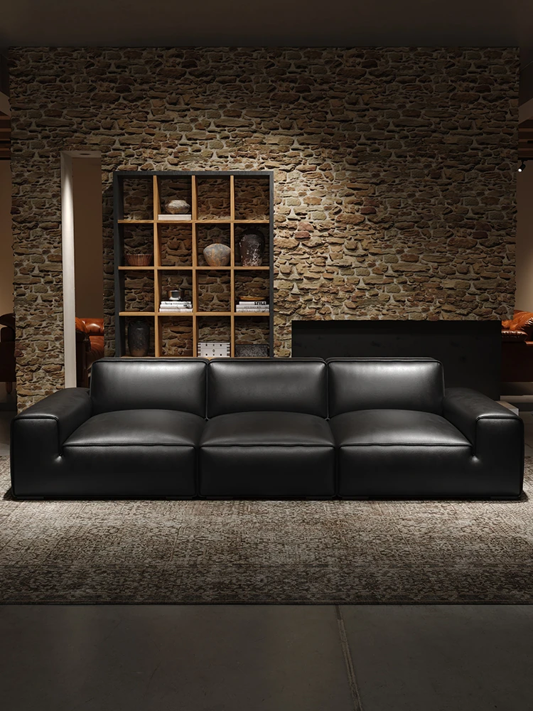 Italian Luxury Black Cowhide Sofa - Premium Genuine Leather Couch for High-End Living Rooms and Villas - Stylish and Comfortable Block Design for Modern Homes