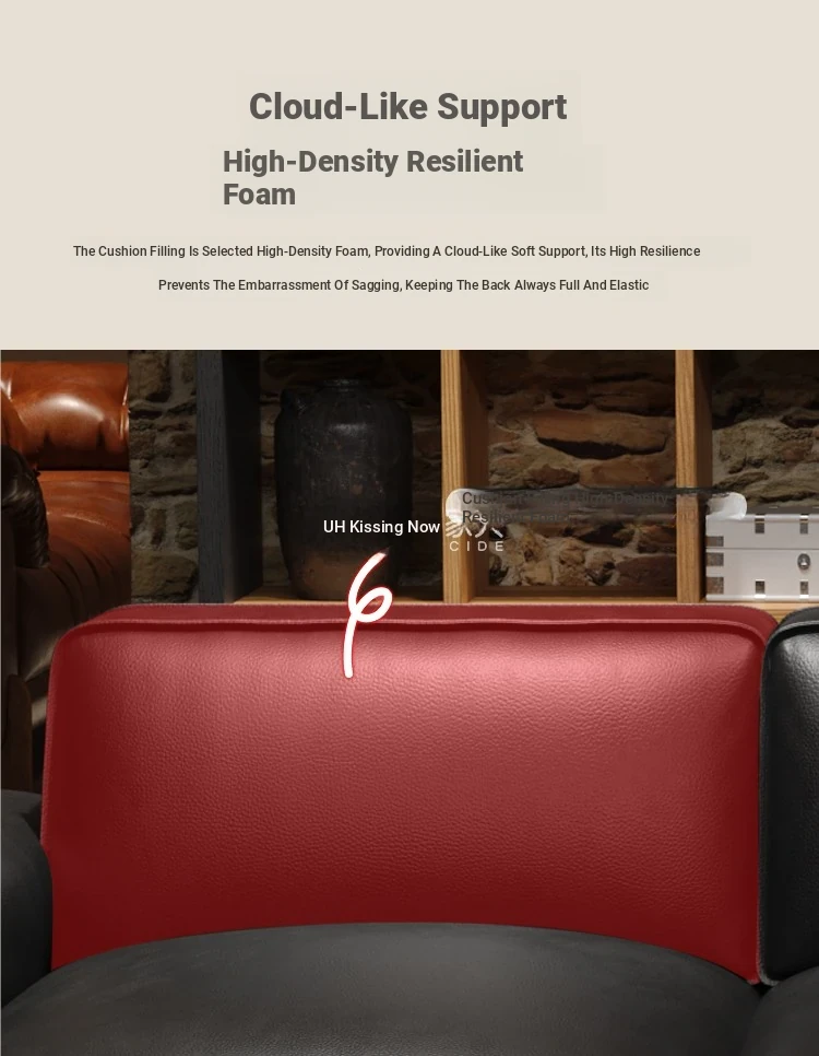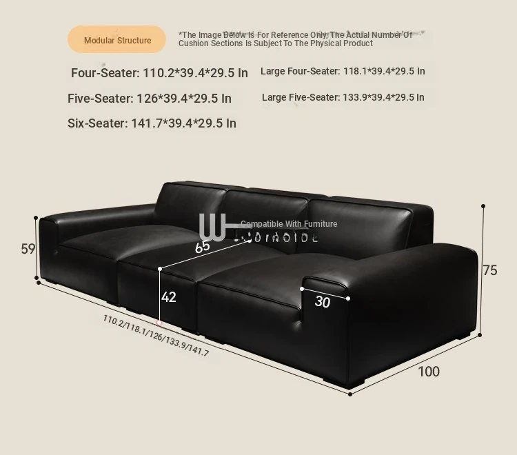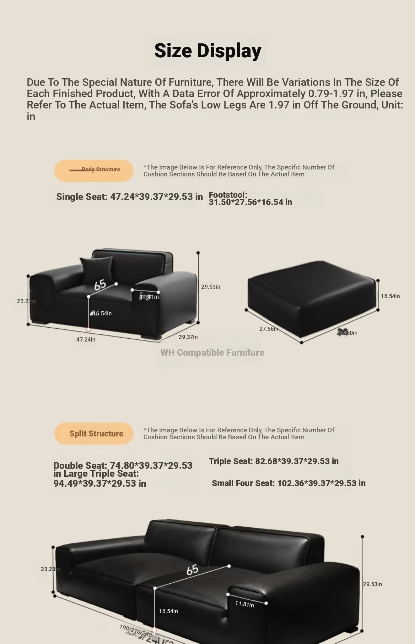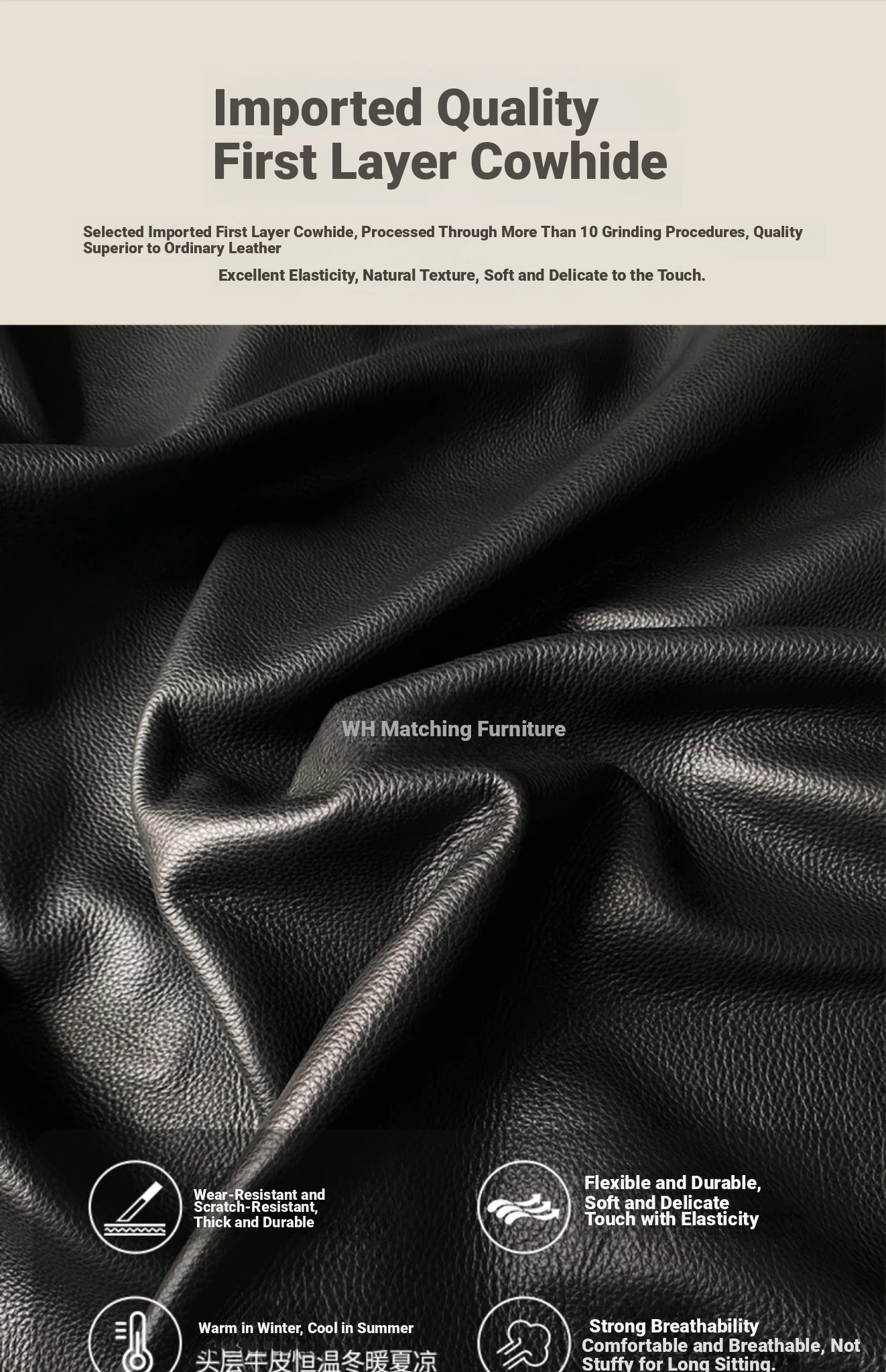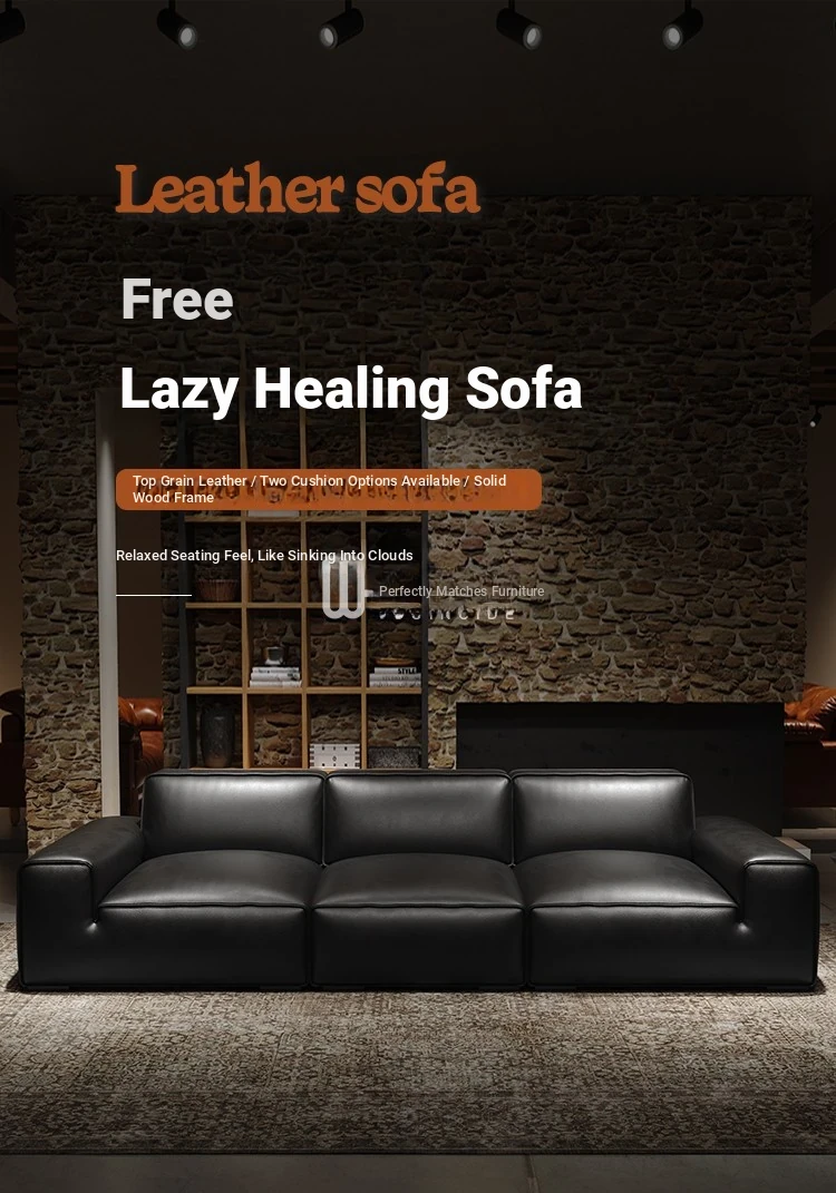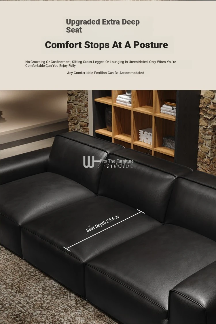 Italian Luxury Black Cowhide Sofa - Premium Genuine Leather Couch for High-End Living Rooms and Villas - Stylish and Comfortable Block Design for Modern Homes