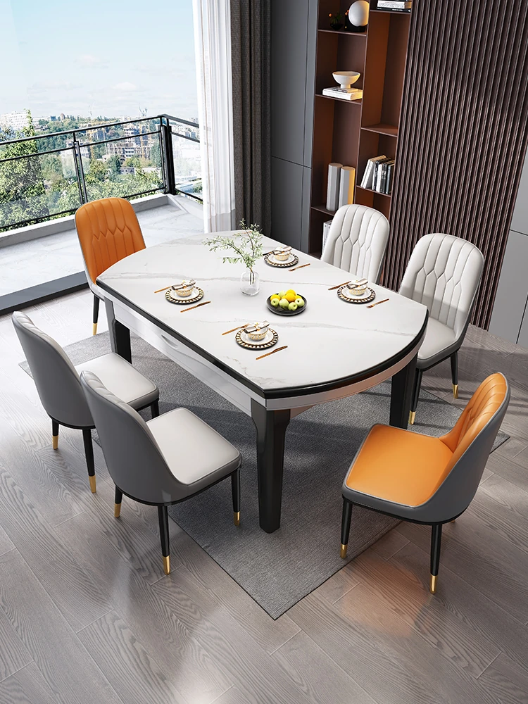 2025年新作!高温耐久のシンプルデザイン、イタリアンラグジュアリーのリビング用長方形ダイニングテーブル&チェアセット!家でおしゃれに過ごせるアイテムです。