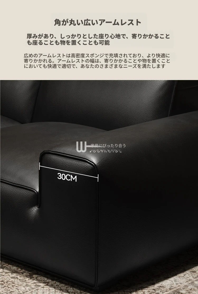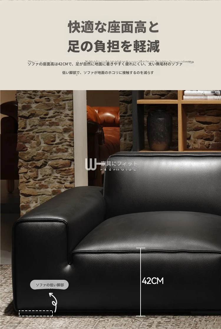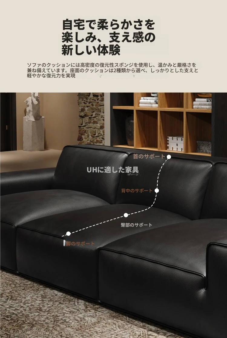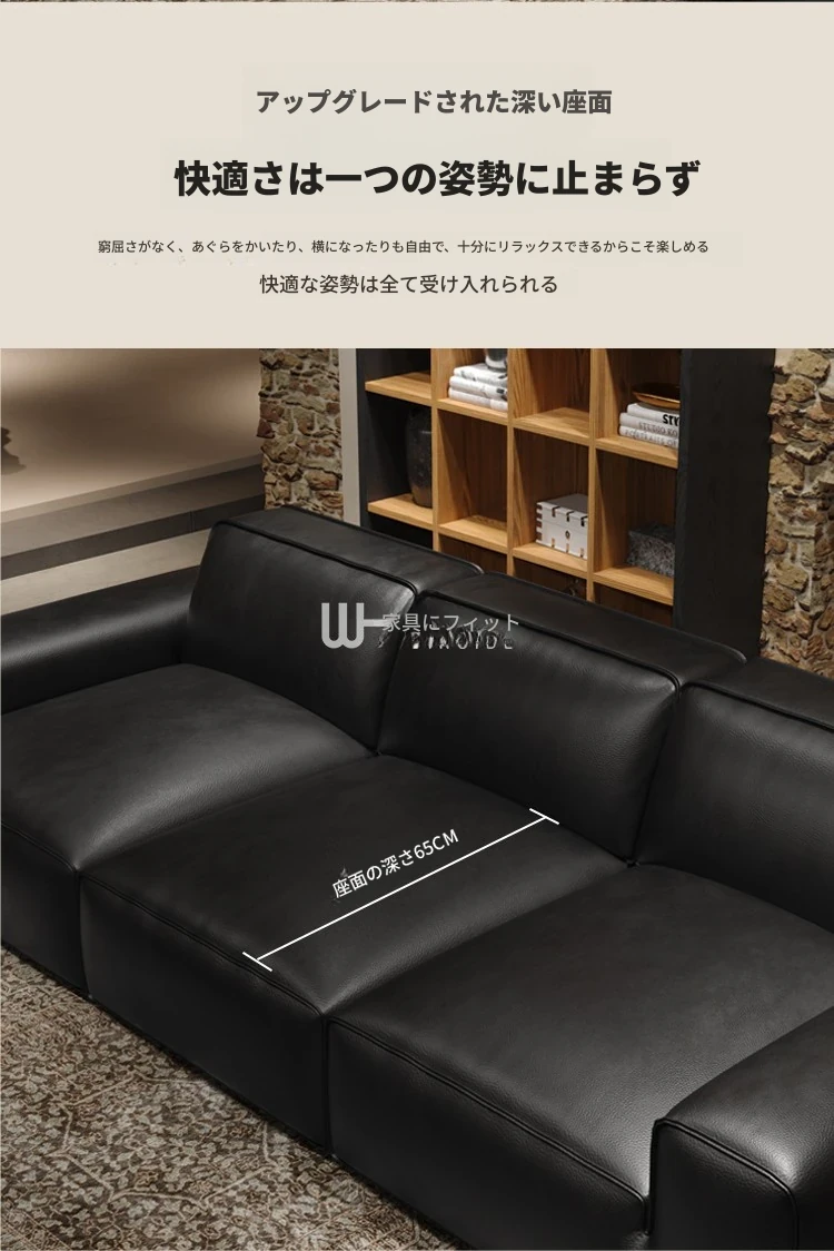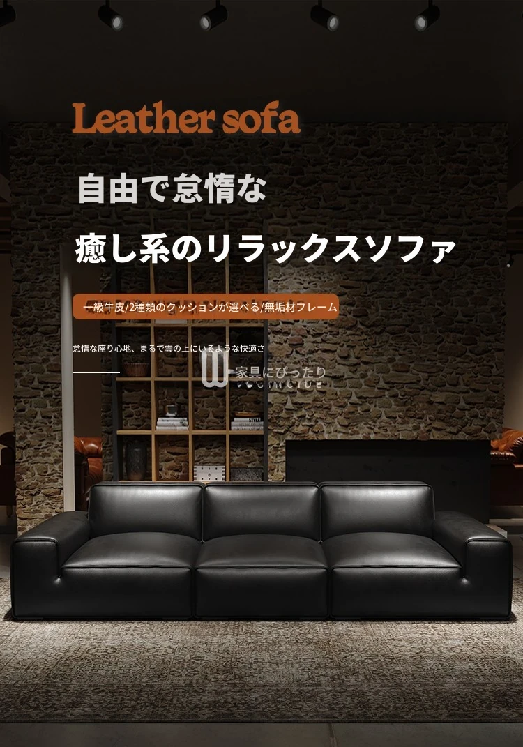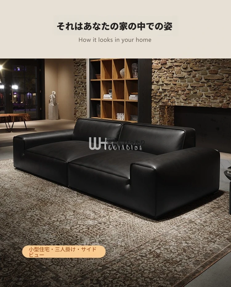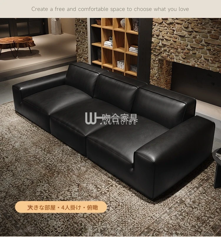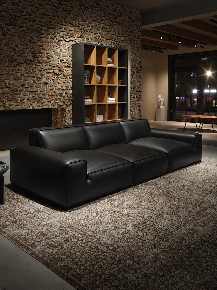 イタリアンラグジュアリー 大型ブラックカウハイドソファ 高級リビング用 ヴィラや広いフロアにぴったりな豆腐ブロックデザインの本革ソファ