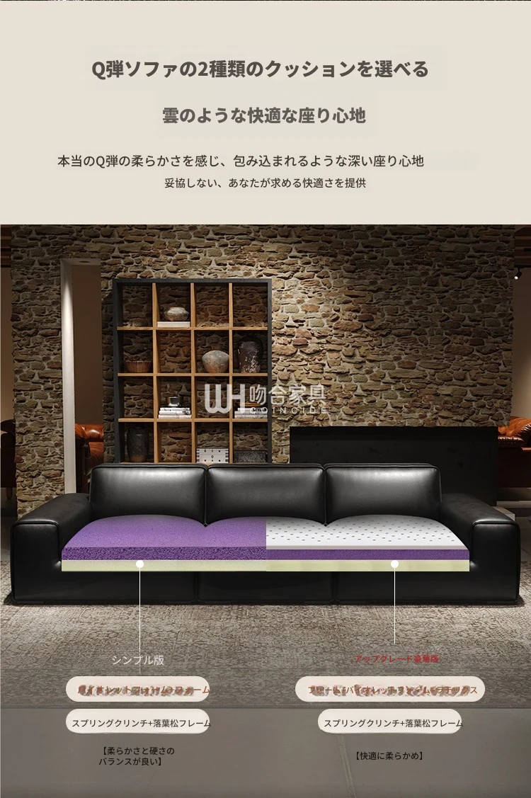 フラッグシップ版-接触面加厚2.2MM輸入S級トップレザー牛革【バイオレットスポンジ+高密度リバウンドスポンジ】