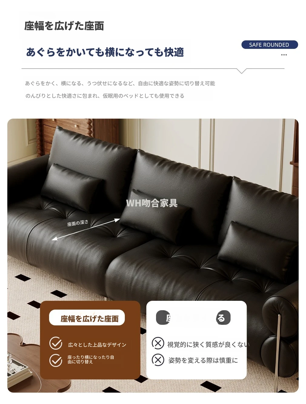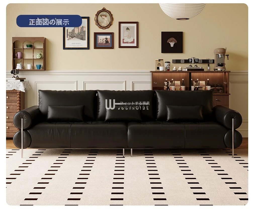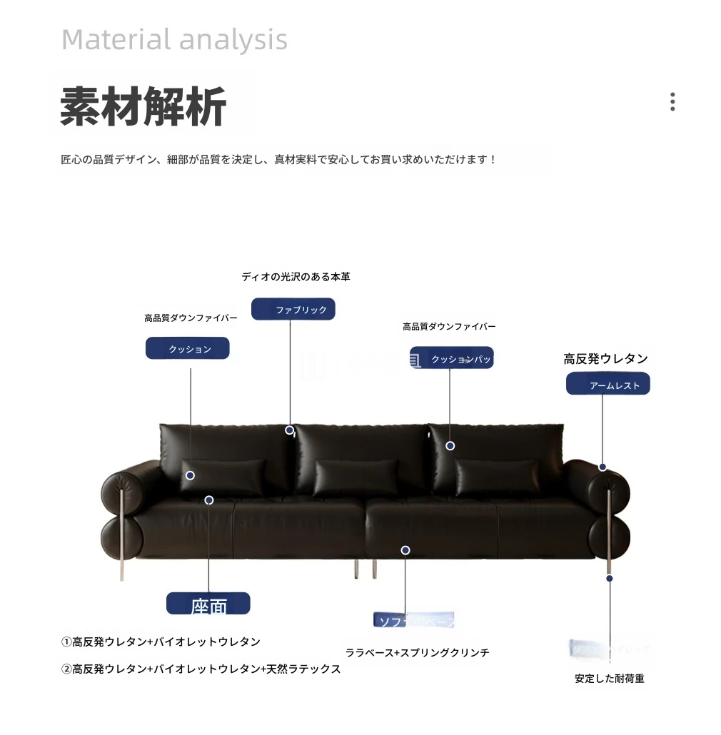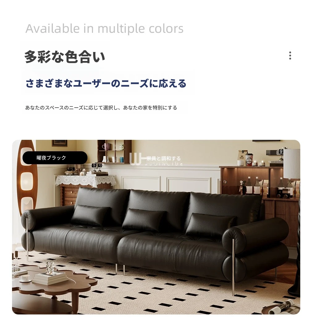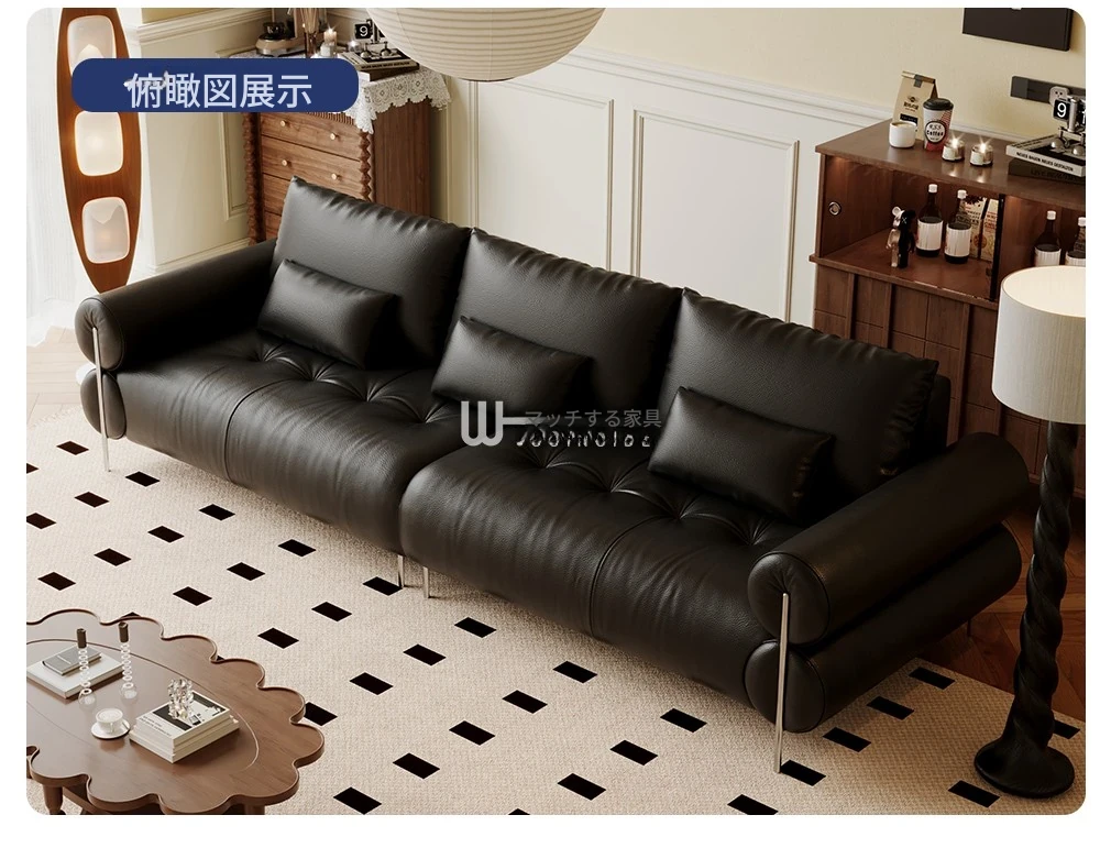 イタリアンラグジュアリー ブラックシュガー 本革ソファ モダンミニマリスト 小型リビング向け 3人掛け 4人掛け ヴィンテージレザー ソファ - スタイリッシュで快適な空間を演出!