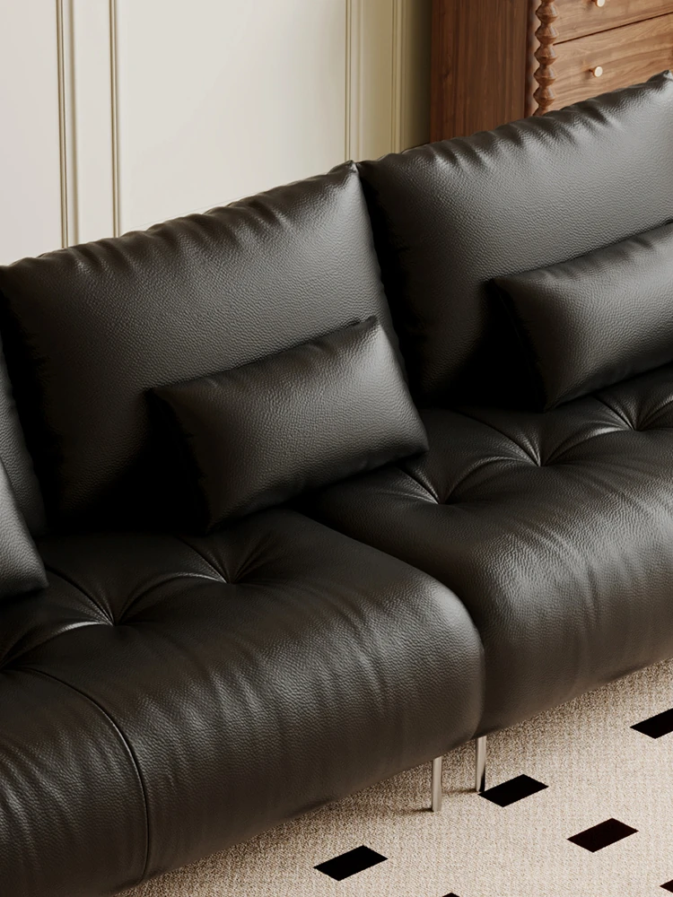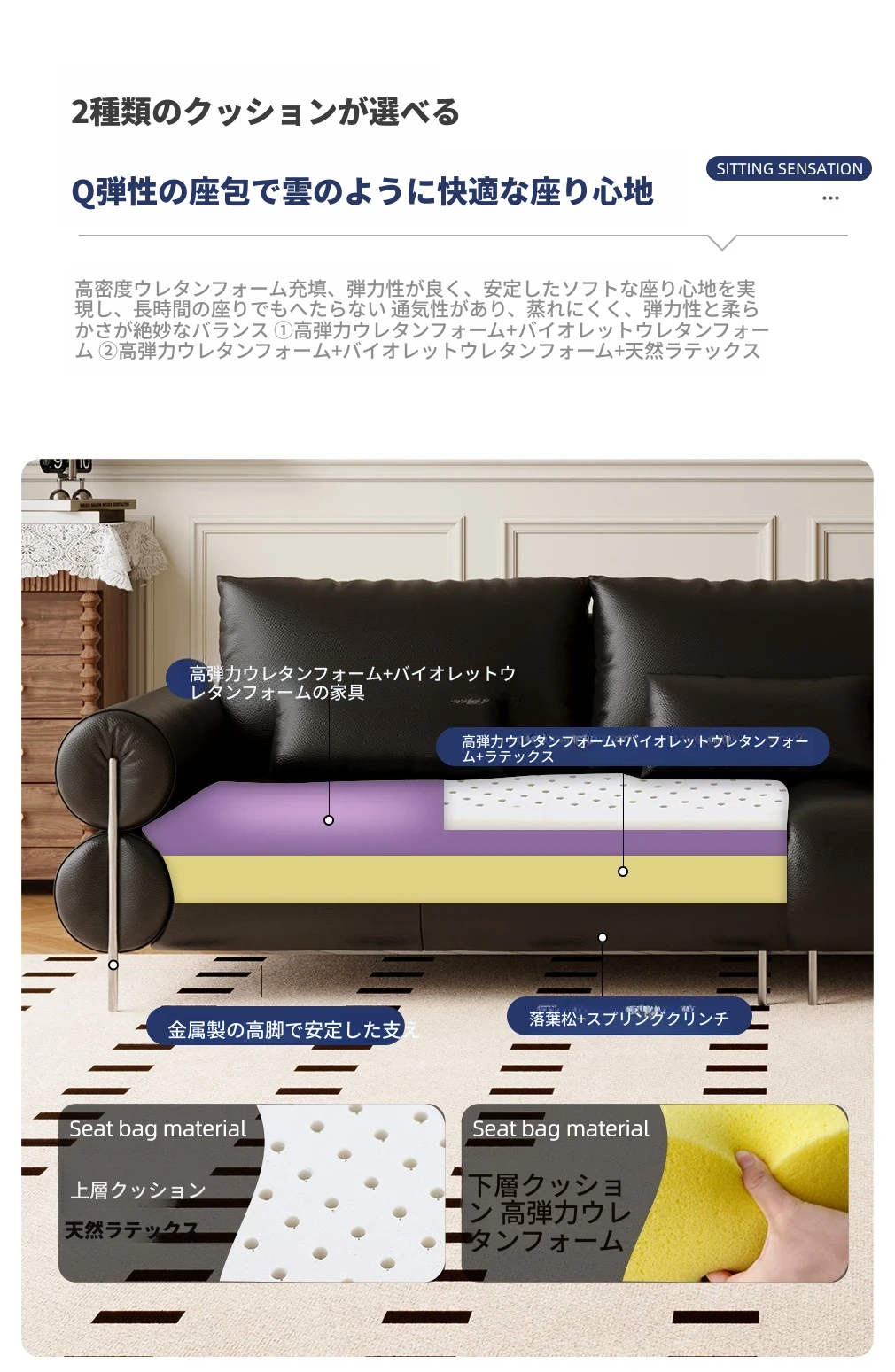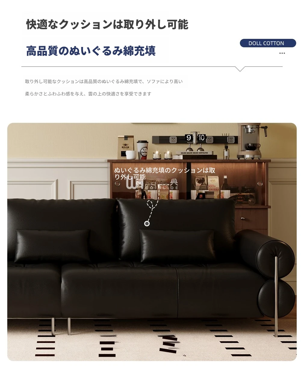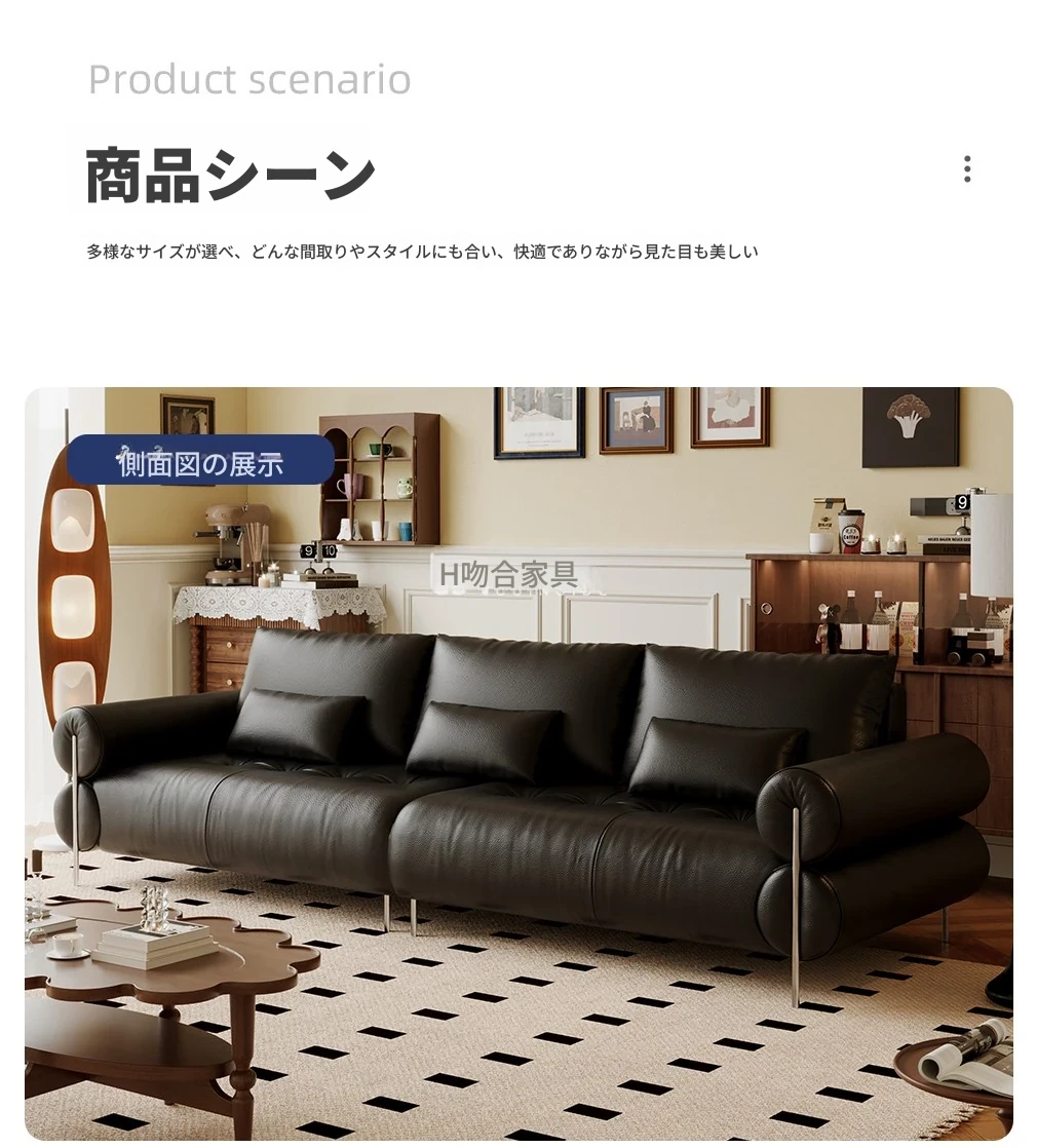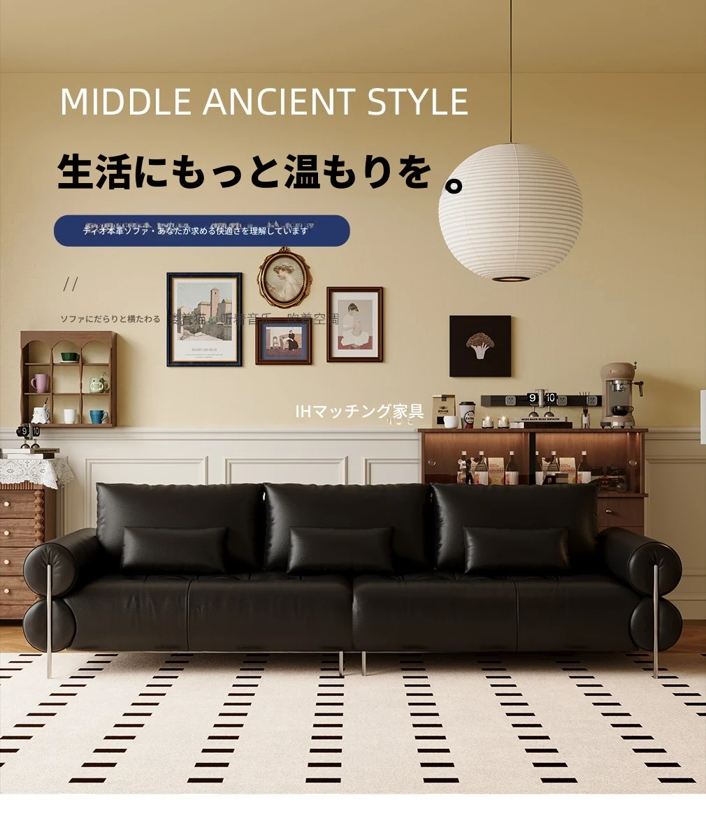 イタリアンラグジュアリー ブラックシュガー 本革ソファ モダンミニマリスト 小型リビング向け 3人掛け 4人掛け ヴィンテージレザー ソファ - スタイリッシュで快適な空間を演出!