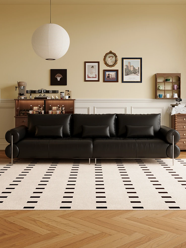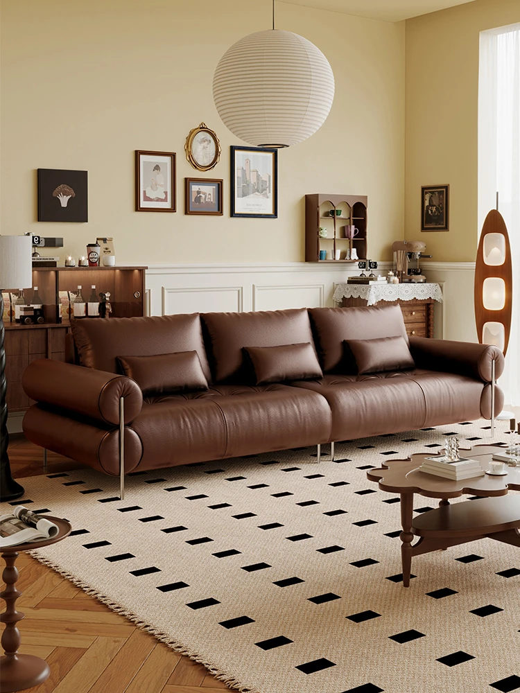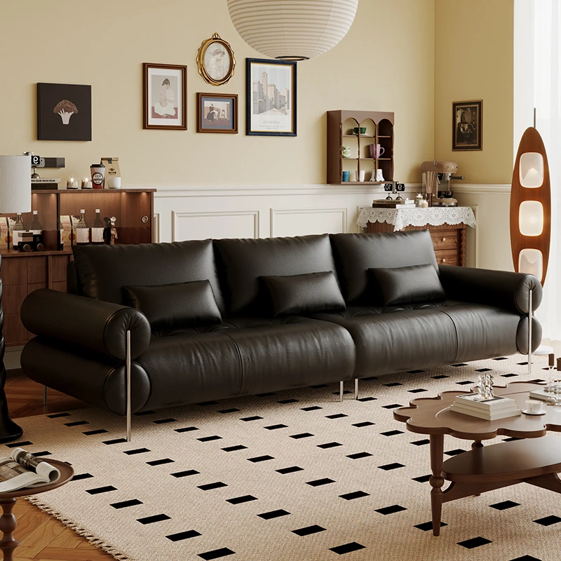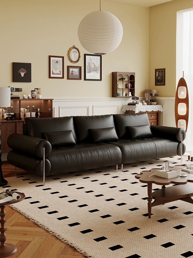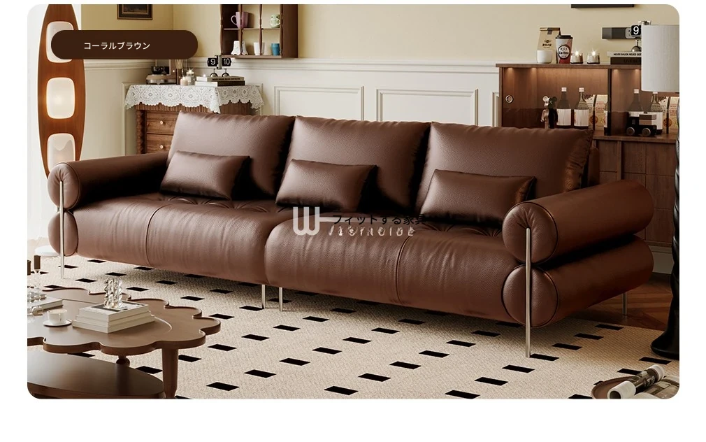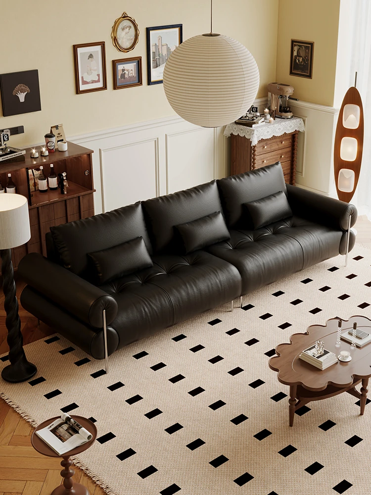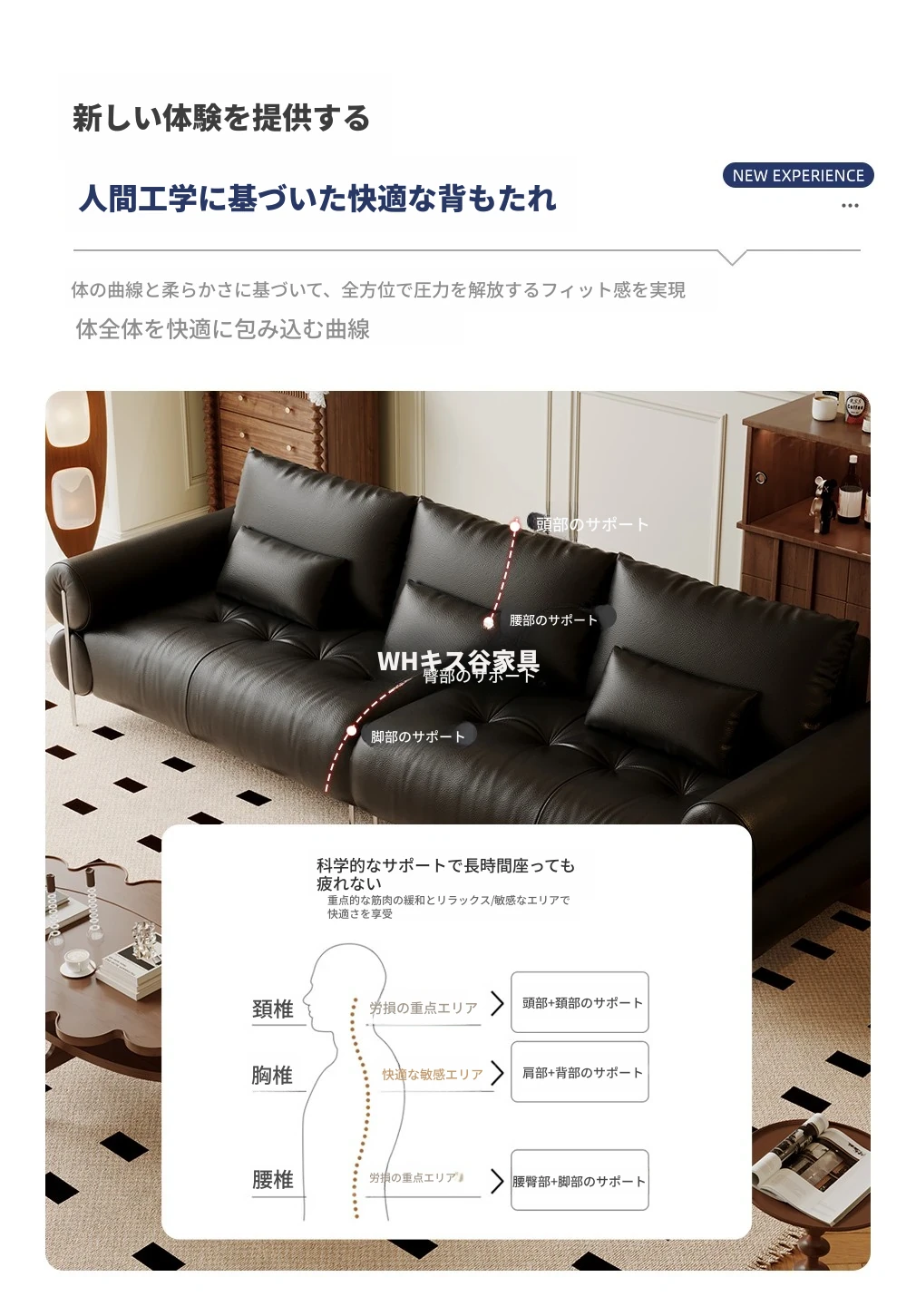 イタリアンラグジュアリー ブラックシュガー 本革ソファ モダンミニマリスト 小型リビング向け 3人掛け 4人掛け ヴィンテージレザー ソファ - スタイリッシュで快適な空間を演出!