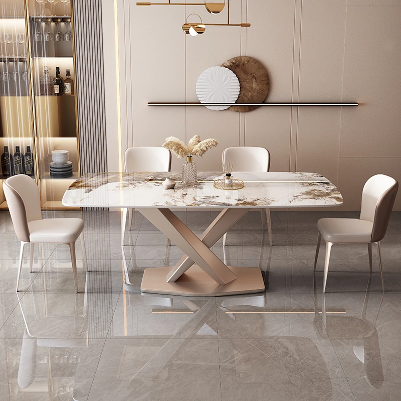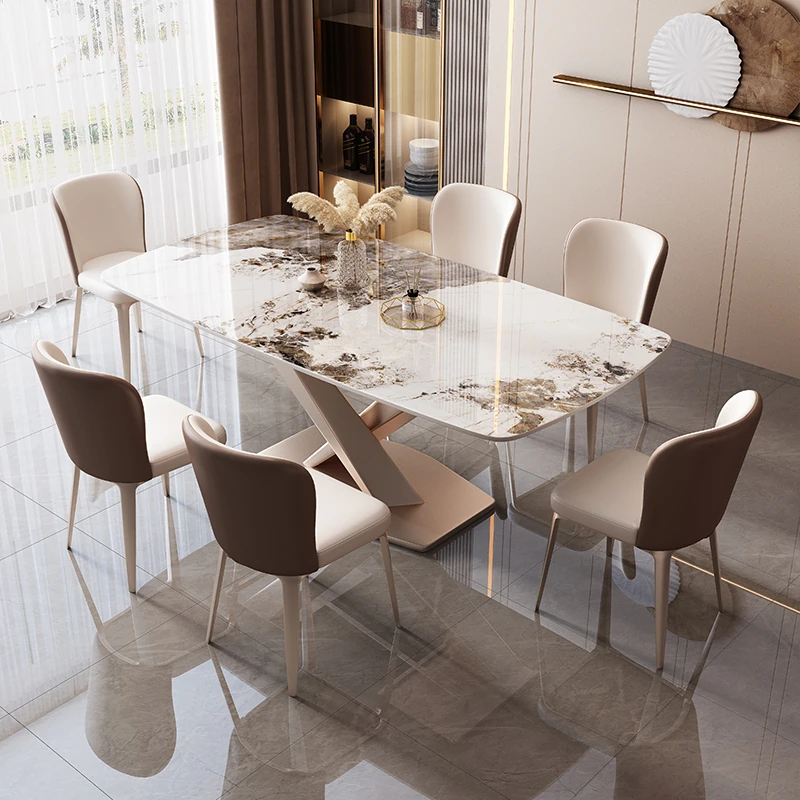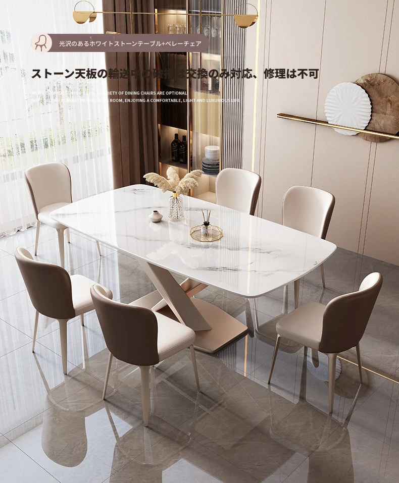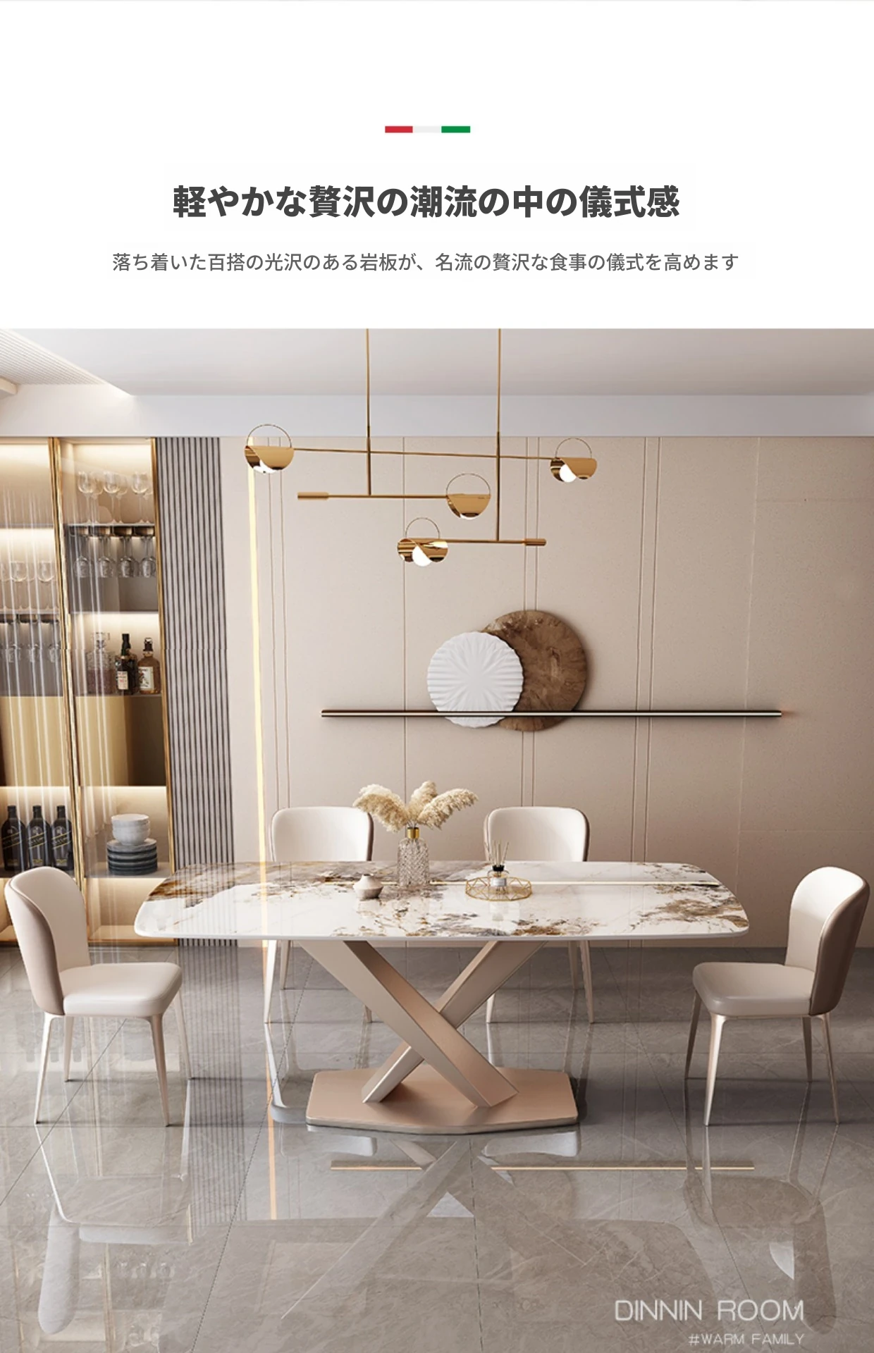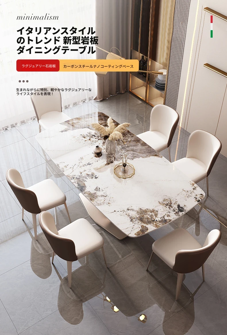 モダンでシンプルなイタリアンミニマリズムの大理石ダイニングテーブル。小型住宅に最適、軽やかなラグジュアリーを演出する1.3メートルの長方形テーブルとチェアのセット。おしゃれで機能的な空間を実現!
