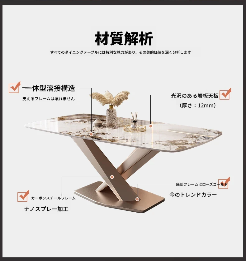 単一ダイニングテーブル【1.5メートル】12MM岩板